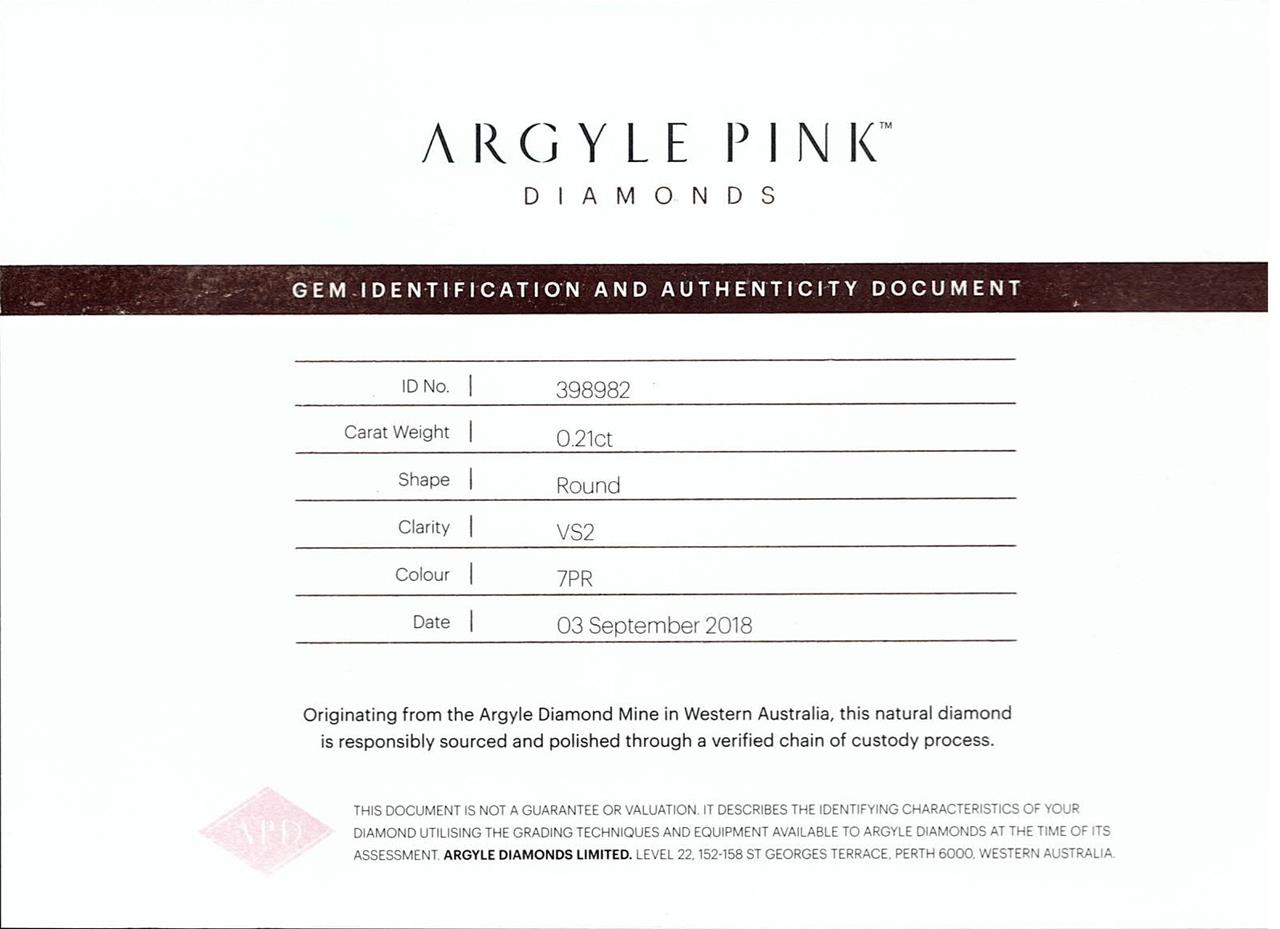 A loose round Argyle Pink Diamond of 0.32ct (with Argyle report graded as 7PR VS2 #398982). (New)