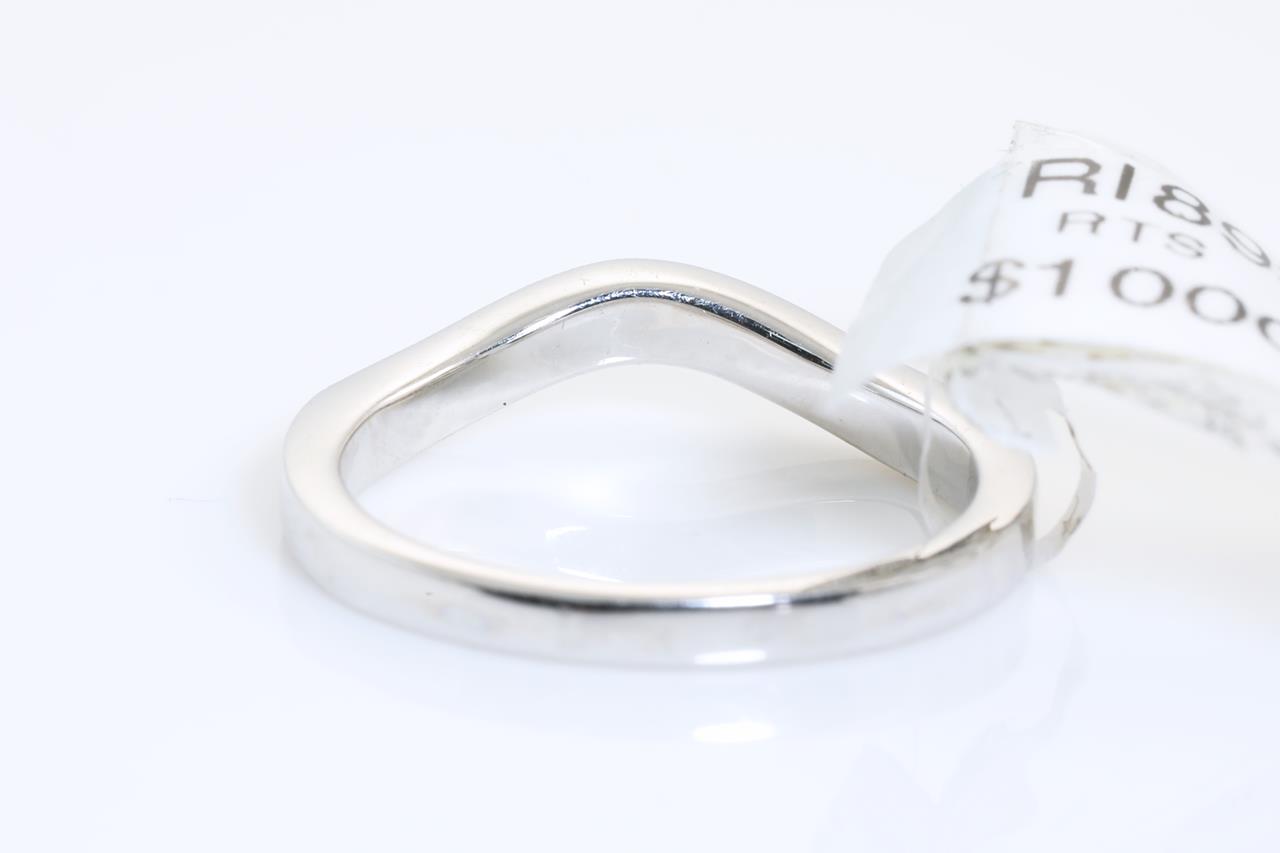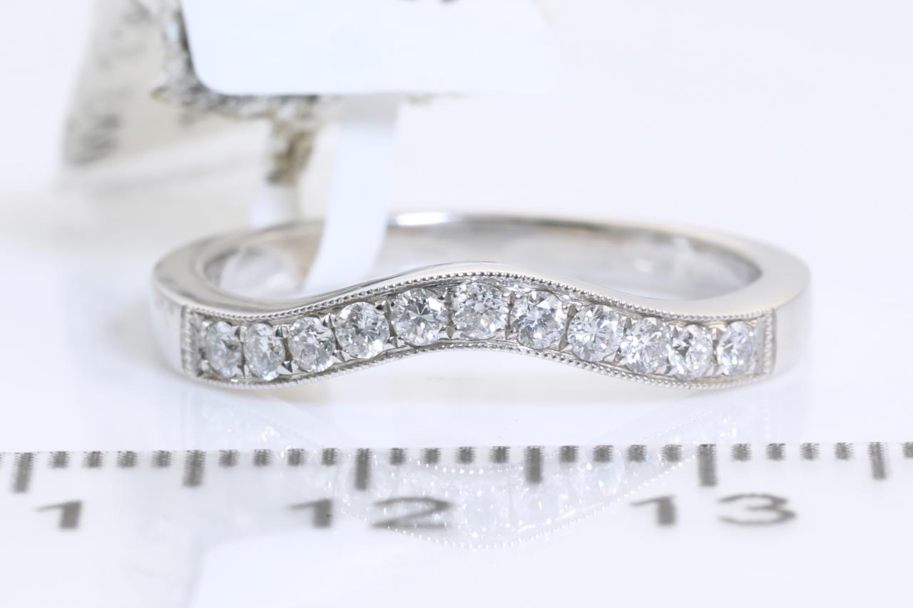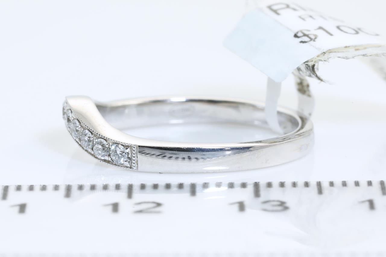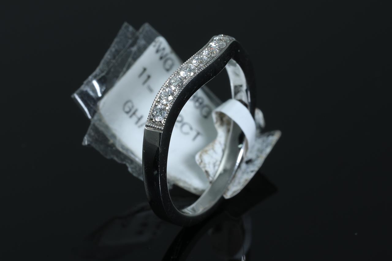Diamond curved design ring with 11 round Diamonds totalling 0.22cts. 18ct white gold. Ring size M. Weight: 3.3g. (As new)