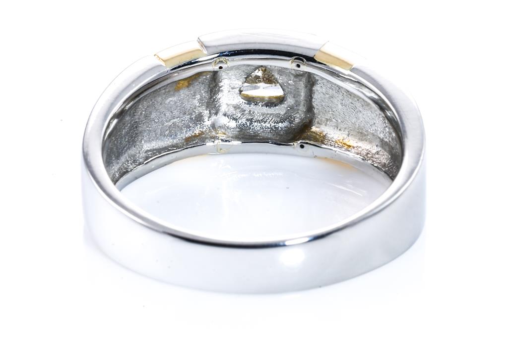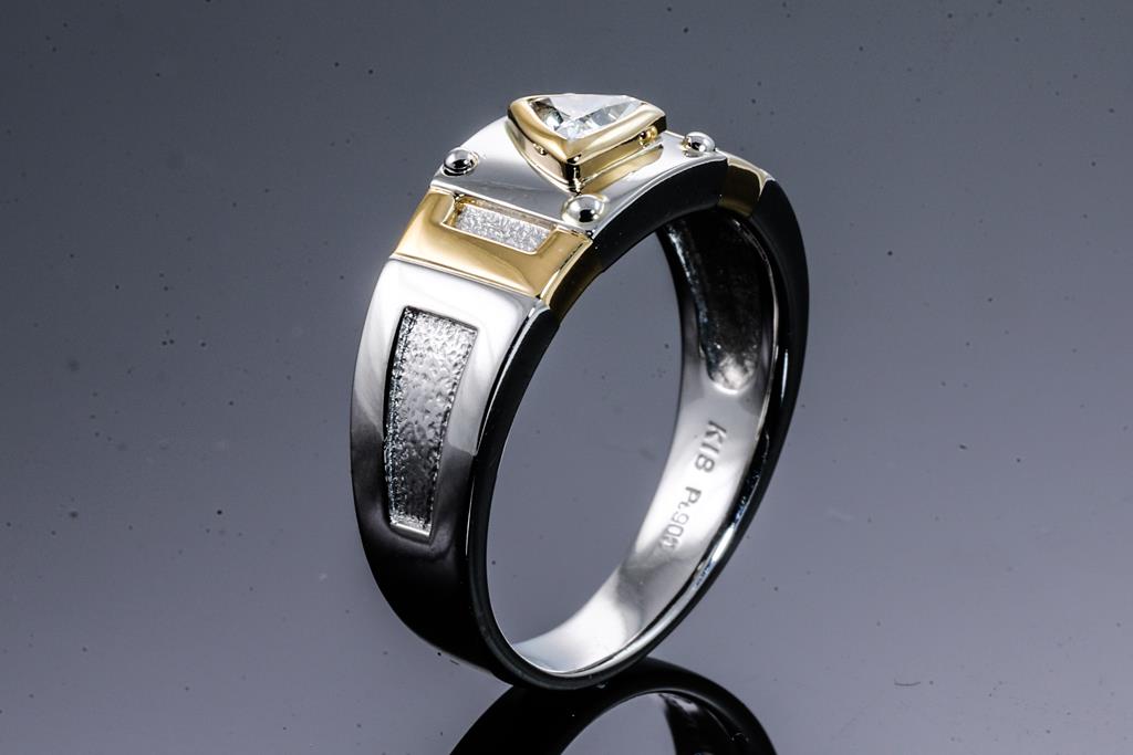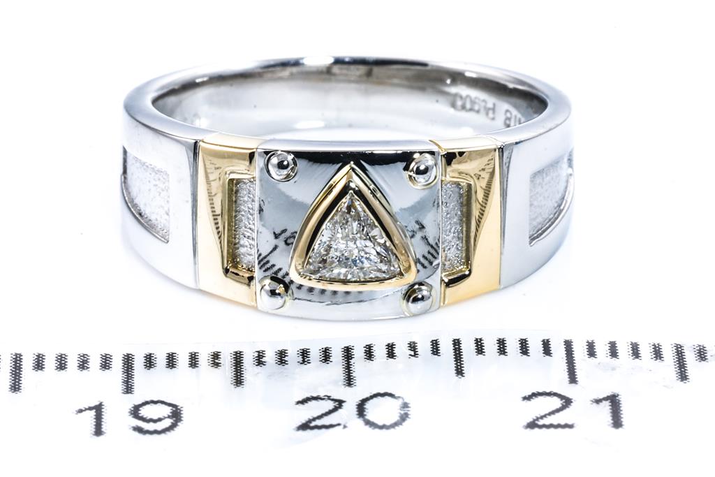 Diamond ring with trilliant cut Diamond of 0.23ct. 18ct yellow gold and platinum. Ring size P. Weight: 10.5g. (Pre-owned)