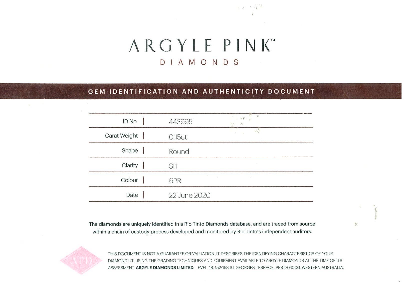 A loose round Argyle Pink Diamond of 0.23ct (with Argyle report graded as 8PR SI2 #431410) (New)
