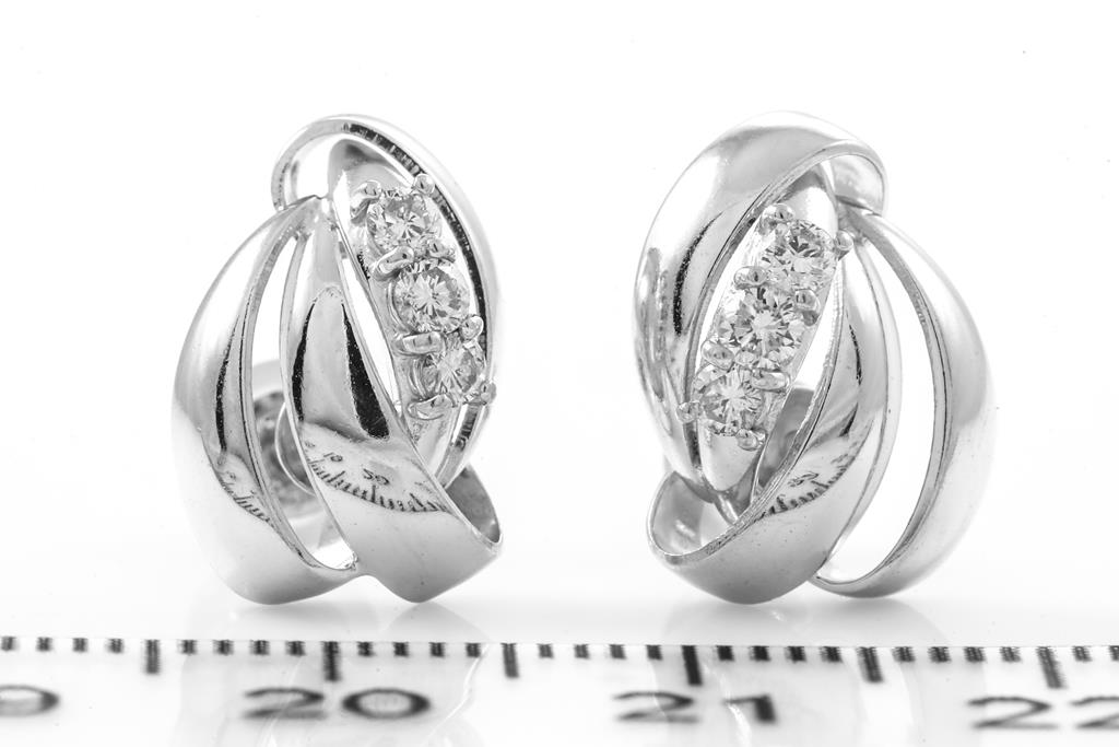 Diamond Earrings with 6 Diamonds totalling approximately 0.24cts. Platinum with platinum & silicon backs. Weight: 3.7g. (Pre-owned)
