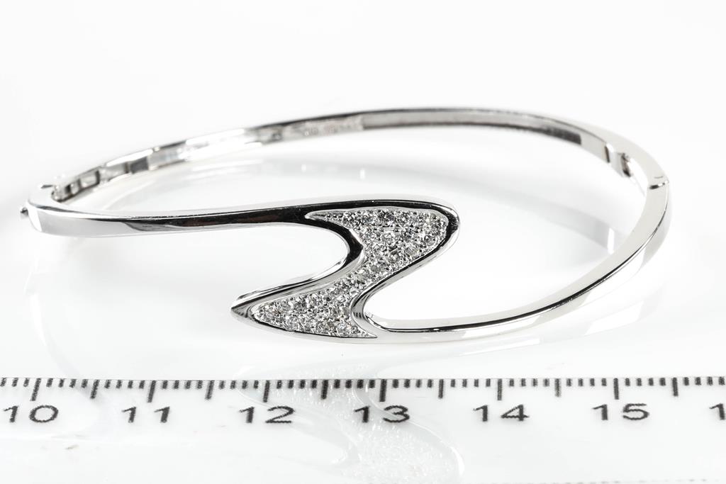 Diamond hinged bangle with round Diamonds totalling 0.25cts. 18ct white gold. circumference: 16.5cm. Weight: 13.5g. (Pre-owned)