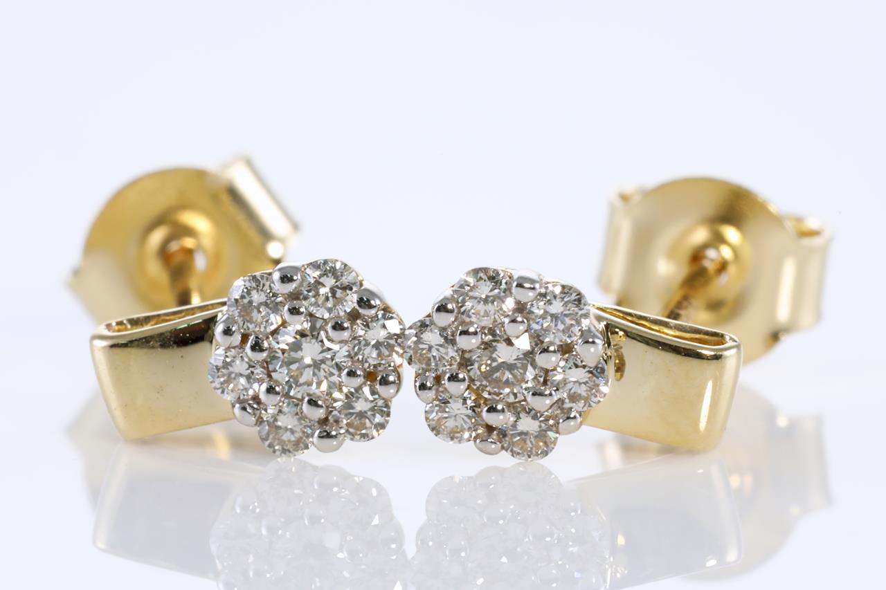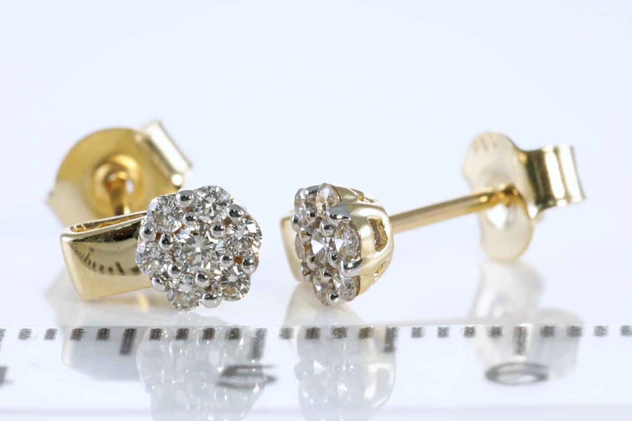 Diamond earrings with round Diamonds totalling 0.25cts (Estimated grading: H SI) 14ct yellow gold. Weight: 1.4g (New)