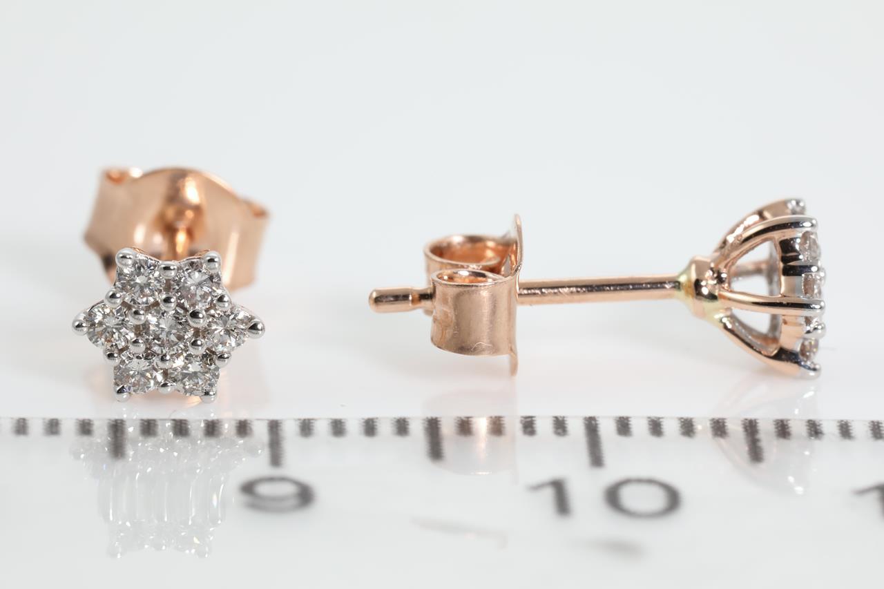 Diamond stud earrings with 14 round Diamonds totallling 0.25cts (Estimated grading: H SI). 14ct rose gold and white gold. Weight: 1.0g (New)