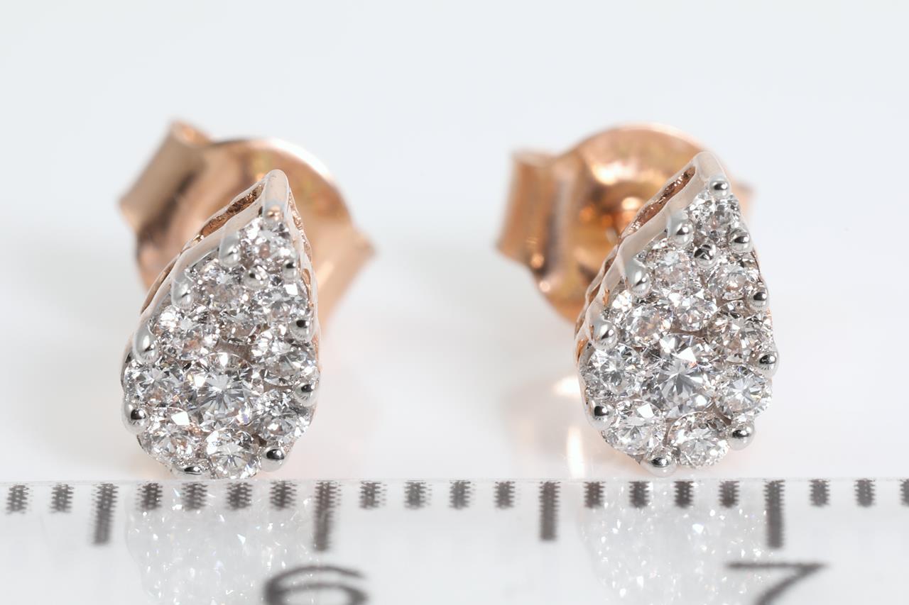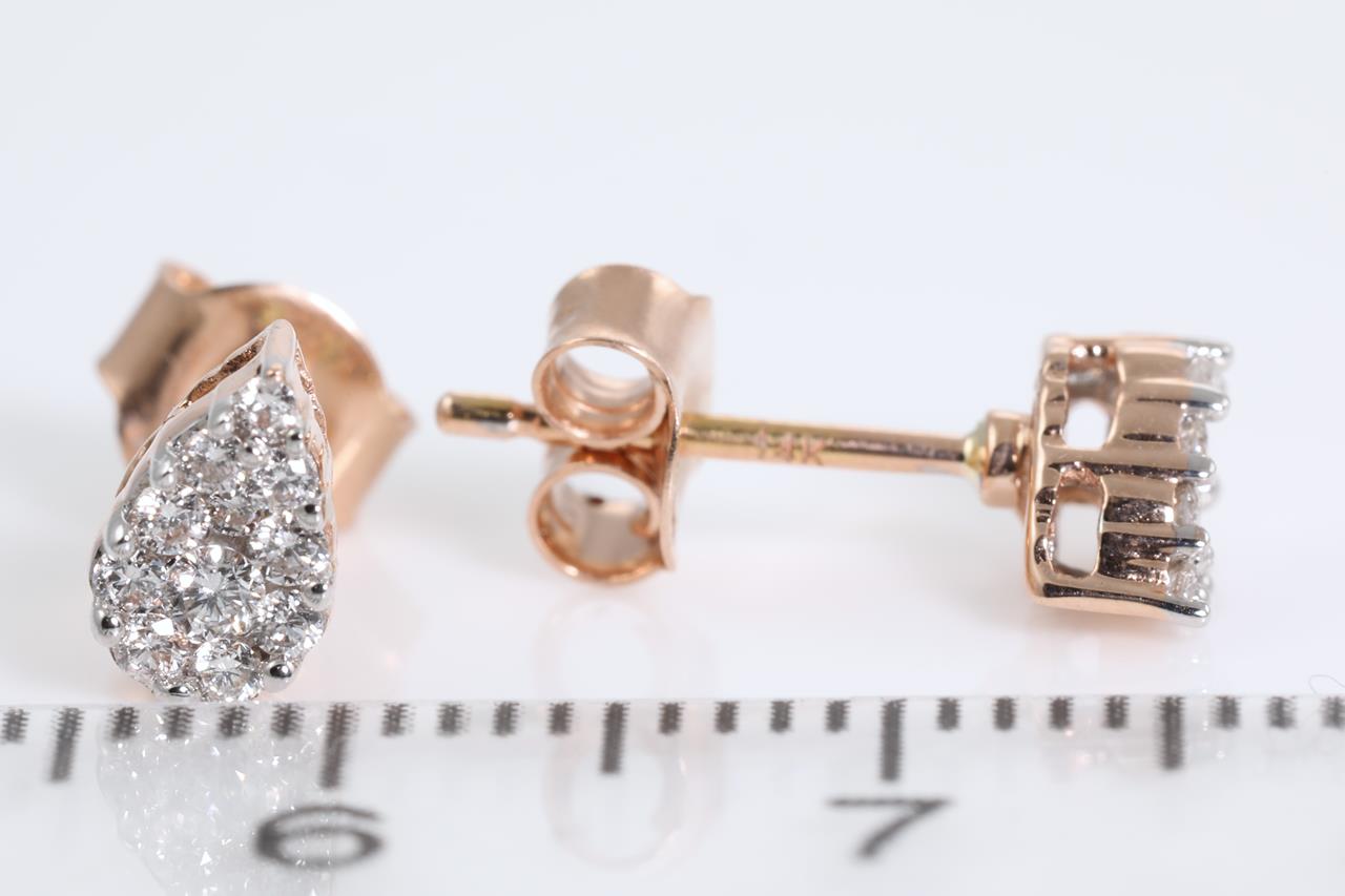 Diamond stud earrings with 22 round Diamonds totalling 0.25cts (Estimated grading: H SI). 14ct rose gold and white gold. Weight: 1.3g (New)