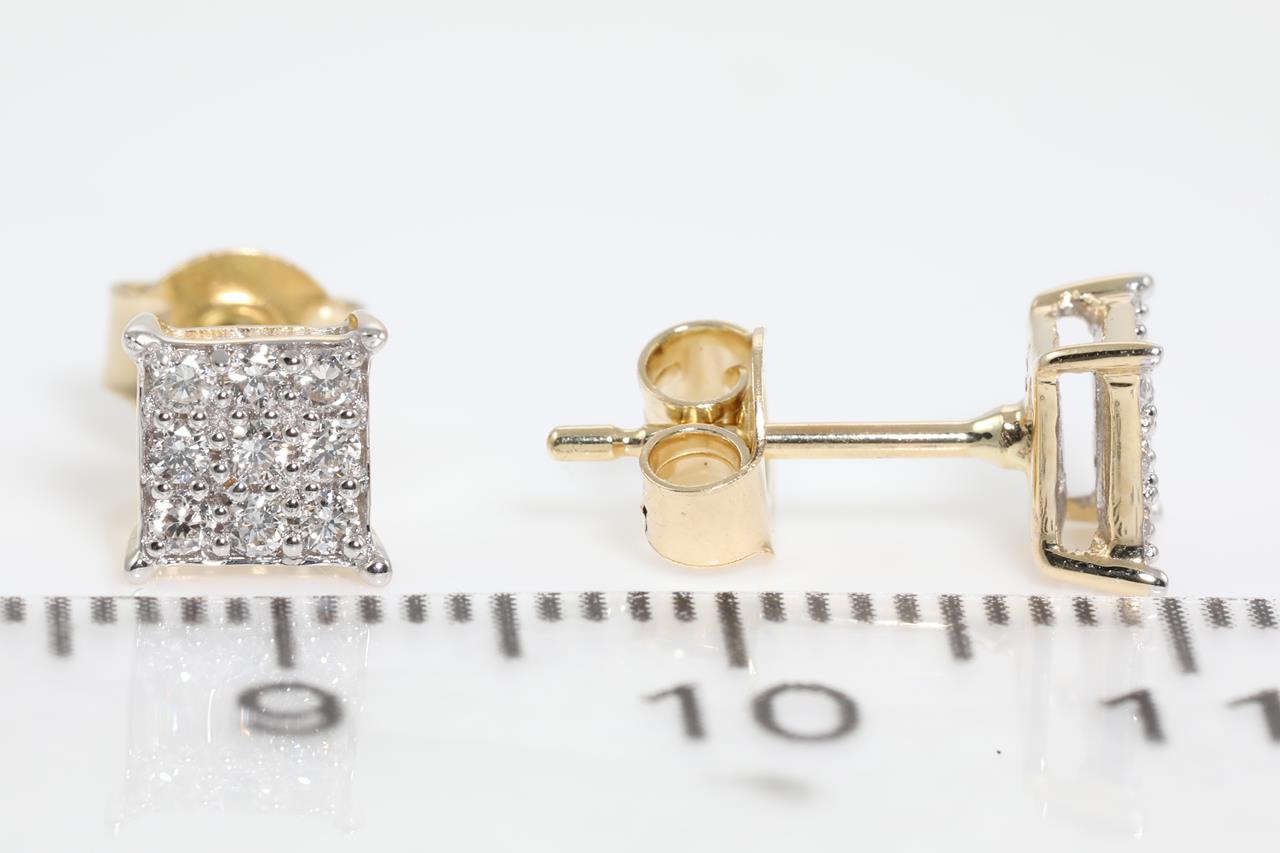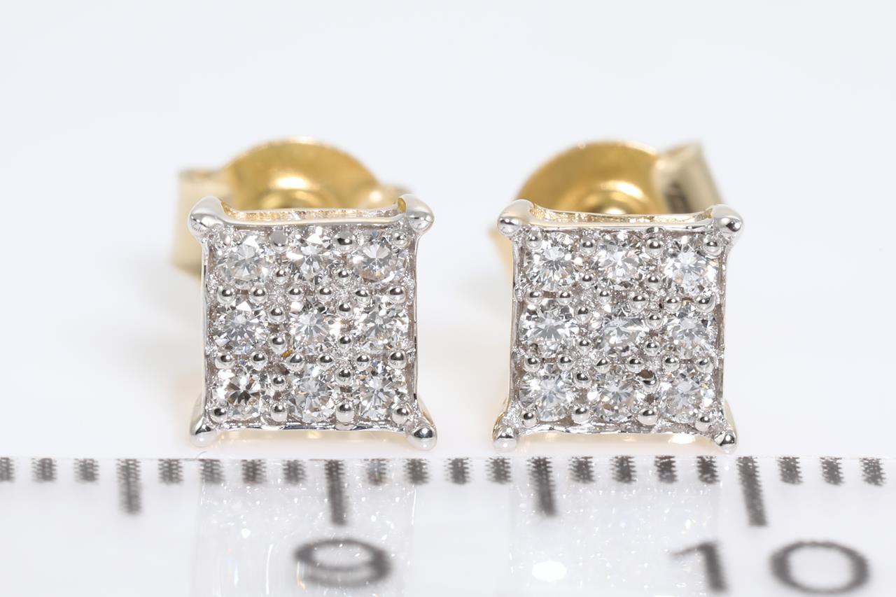 Diamond stud earrings with 18 round Diamonds totallling 0.25cts (Estimated grading: H SI). 14ct yellow gold and white gold. Weight: 1.4g (New)