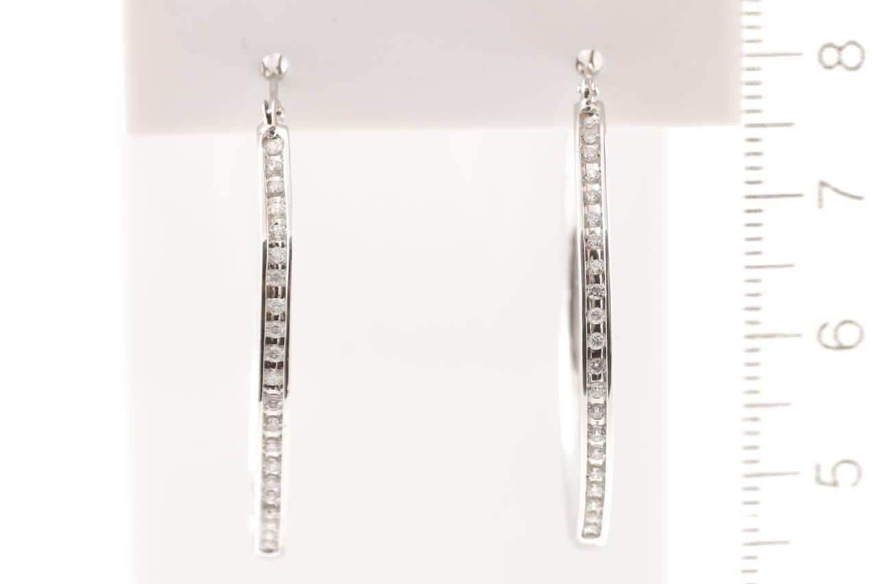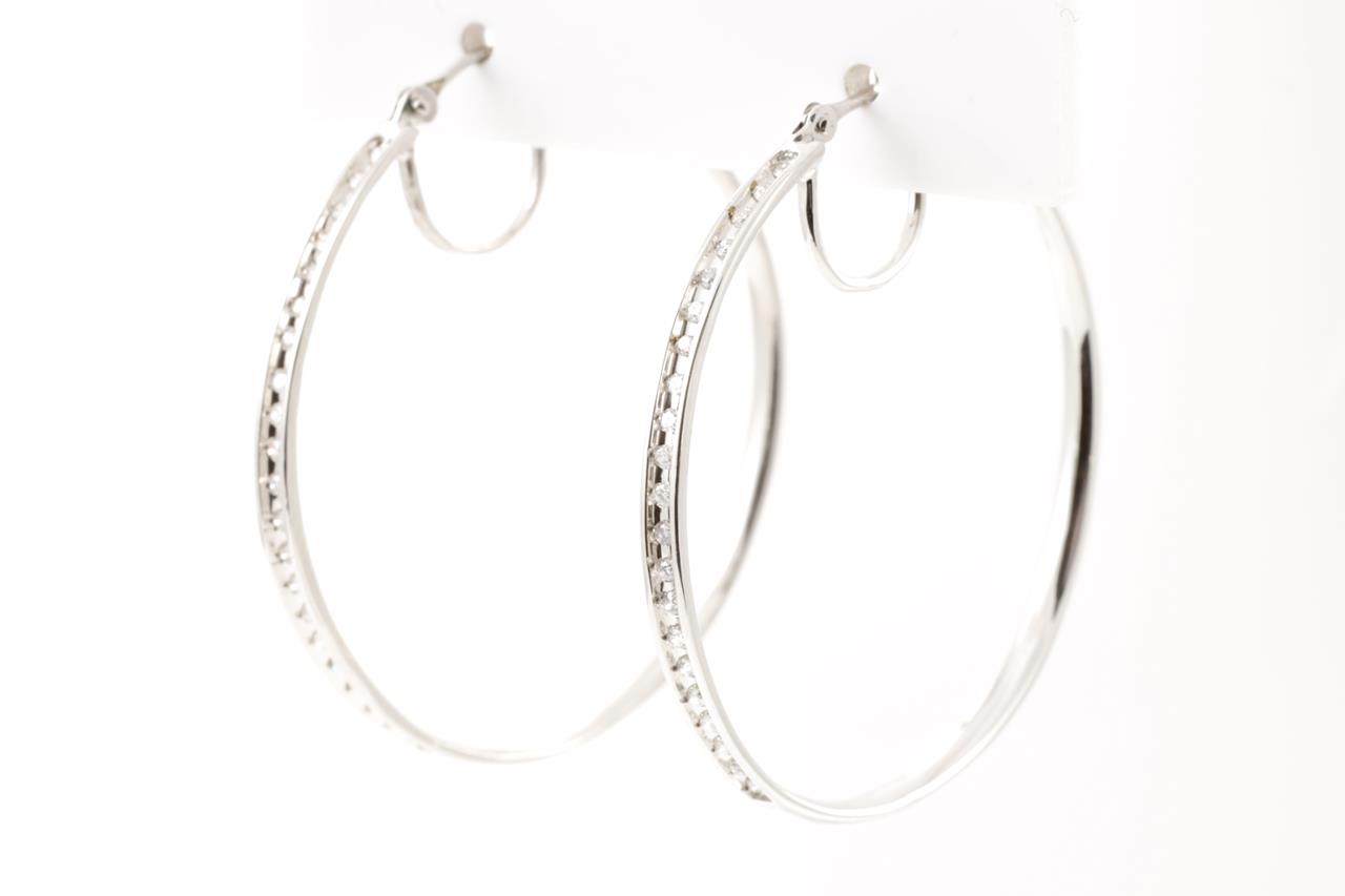 Diamond earrings with round cut Diamonds totalling approximately 0.25cts. 10ct white gold. Weight 3.2g. (Pre-owned)