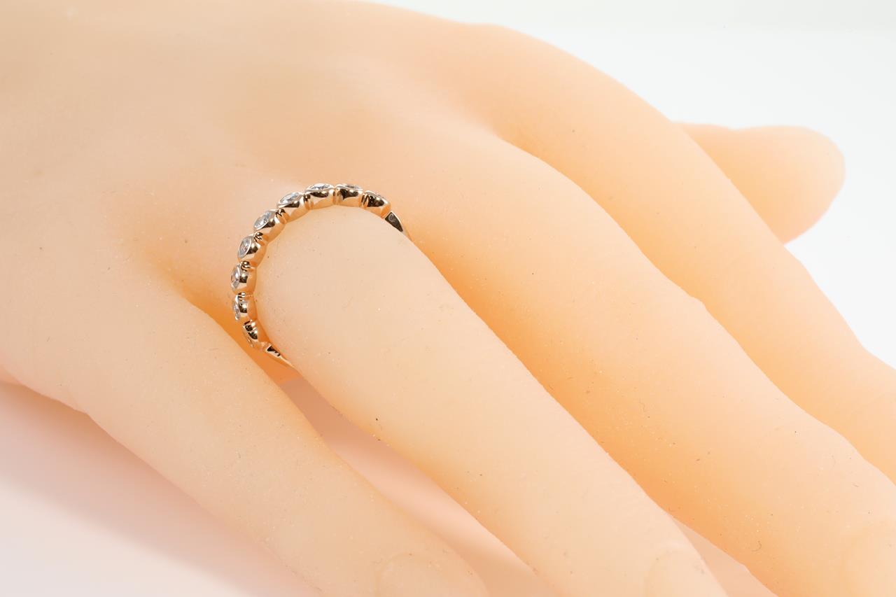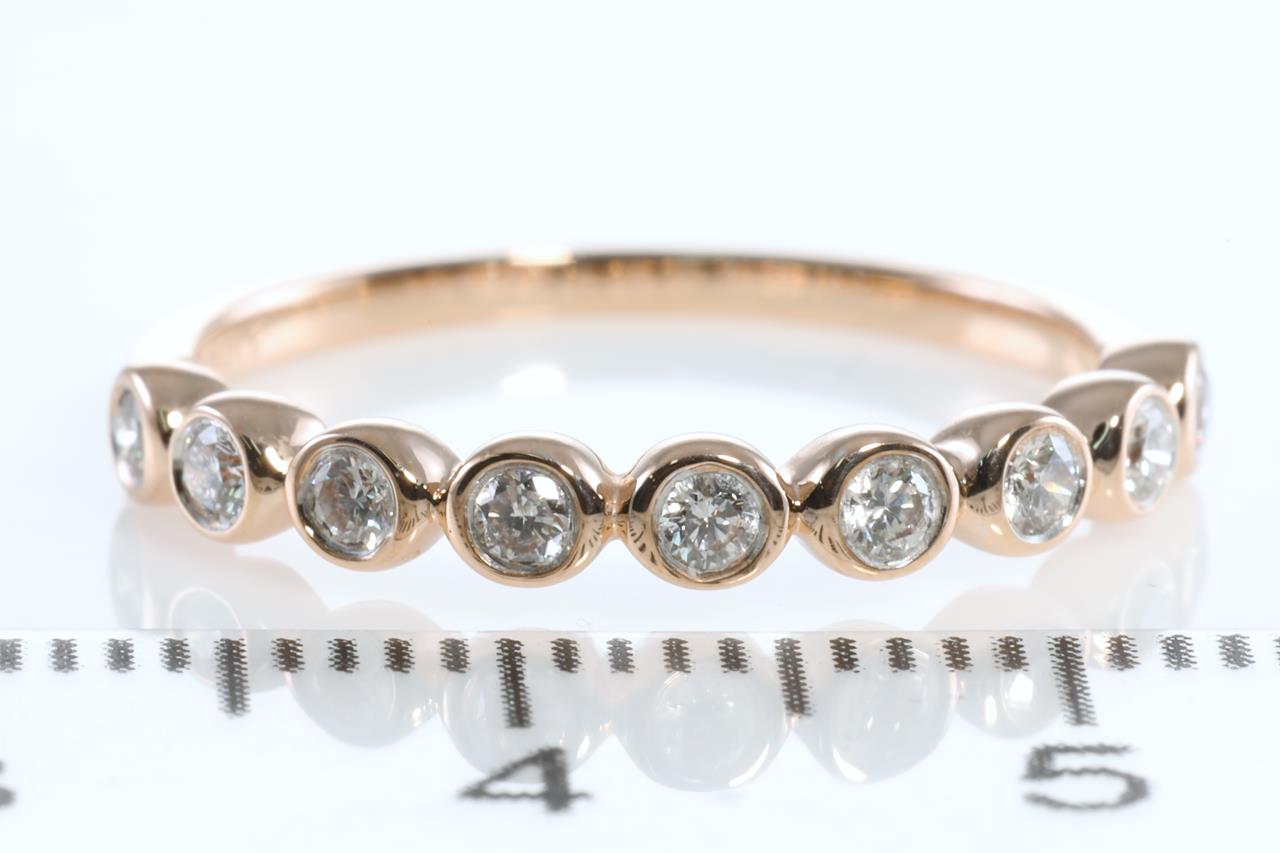 Diamond eternity ring with round Diamonds totalling 0.25cts (Estimated grading: H SI). 14ct rose gold. Ring size: M. Weight: 1.7g (New)