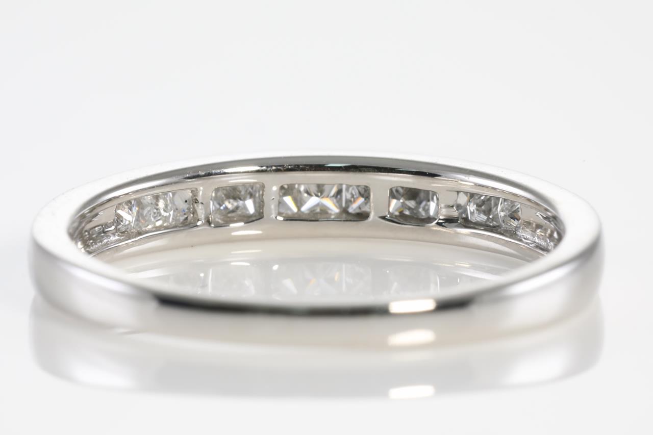 Diamond eternity ring with princess cut Diamonds totalling 0.25cts. 10ct white gold. Ring size N1/2 - Ring resizing is not recommended. Weight: 2.1g (New).