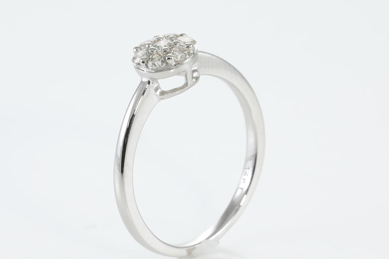 Diamond ring with round Diamonds totalling 0.25cts (Estimated grading: H SI). 14ct white gold. Ring size: L1/2. Weight: 2.1g (New)