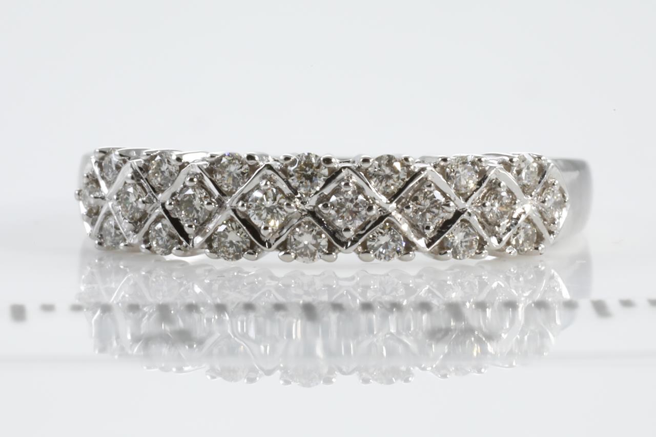 Diamond dress ring with round Diamond totalling 0.25cts (Estimated grading: H SI). 14ct white gold. Ring size L. Weight: 2.1g (New).