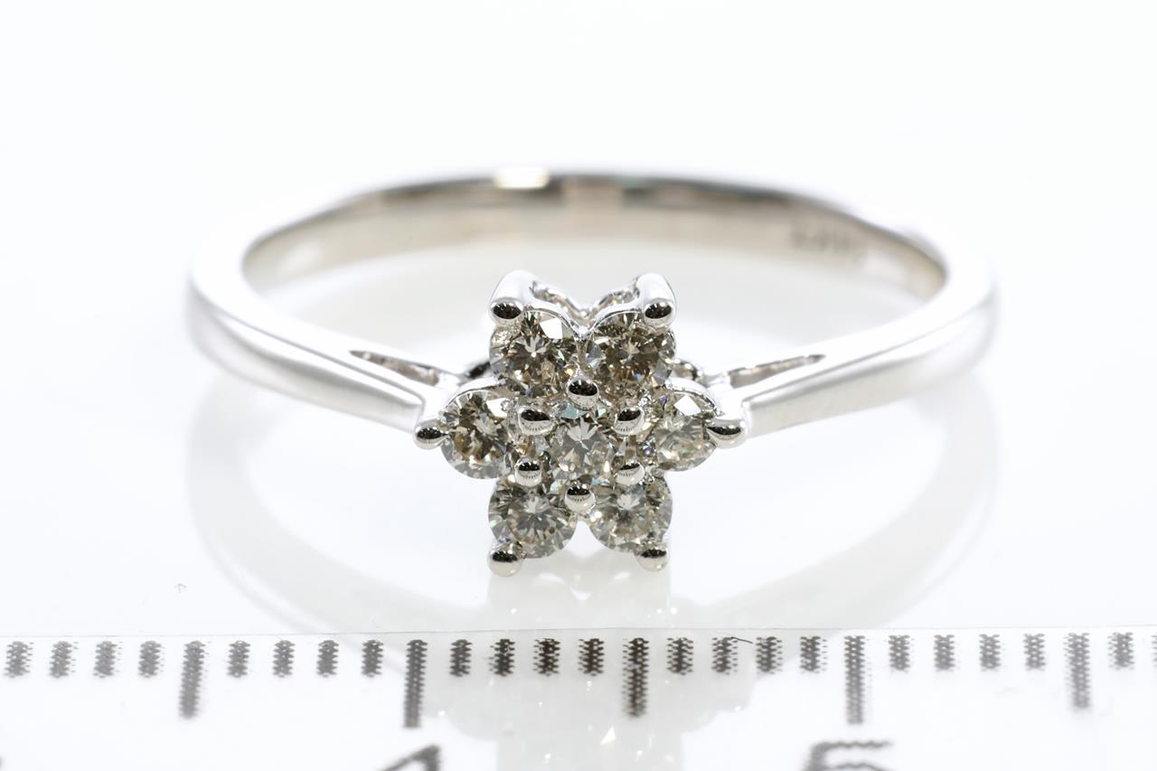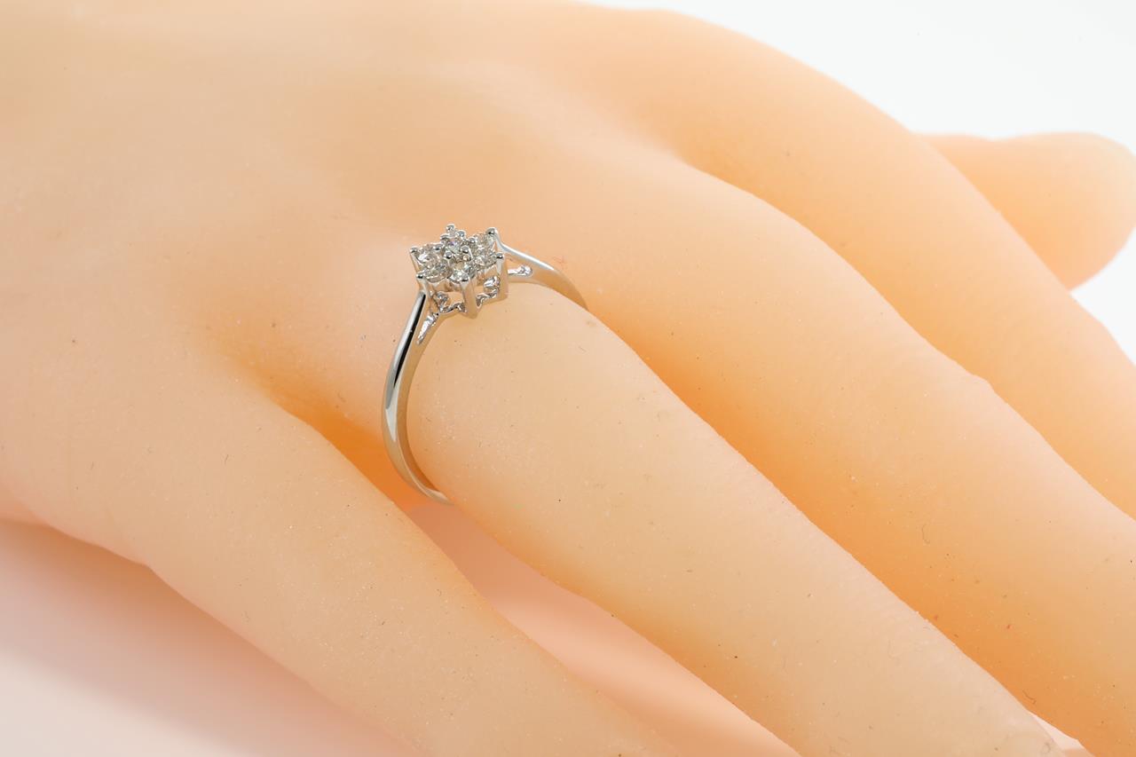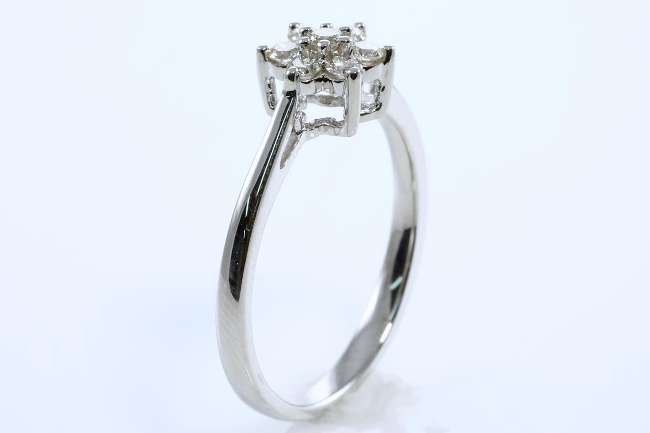 Diamond ring with round Diamonds totalling 0.25cts (Estimated grading: H SI). 14ct white gold. Ring size: L1/2. Weight: 2.2g (New)