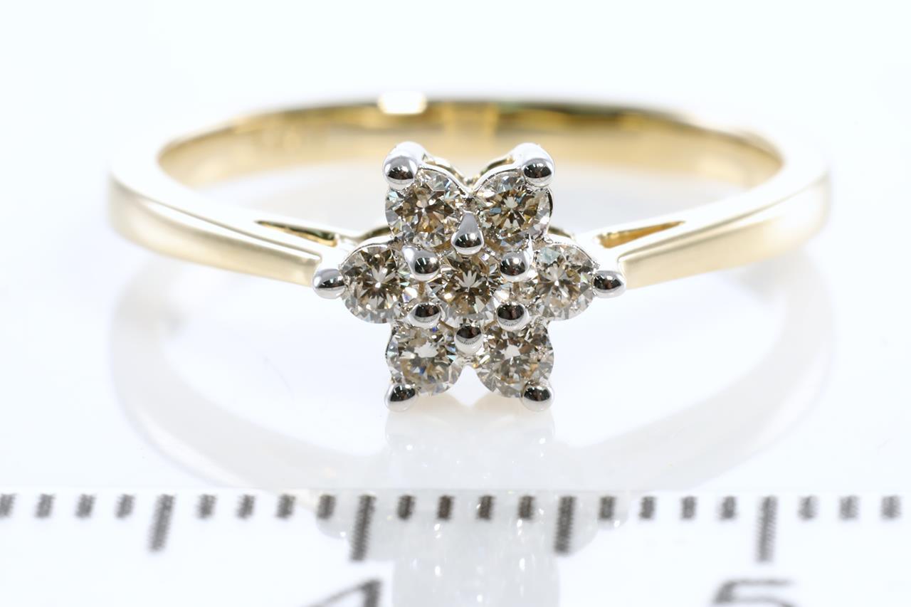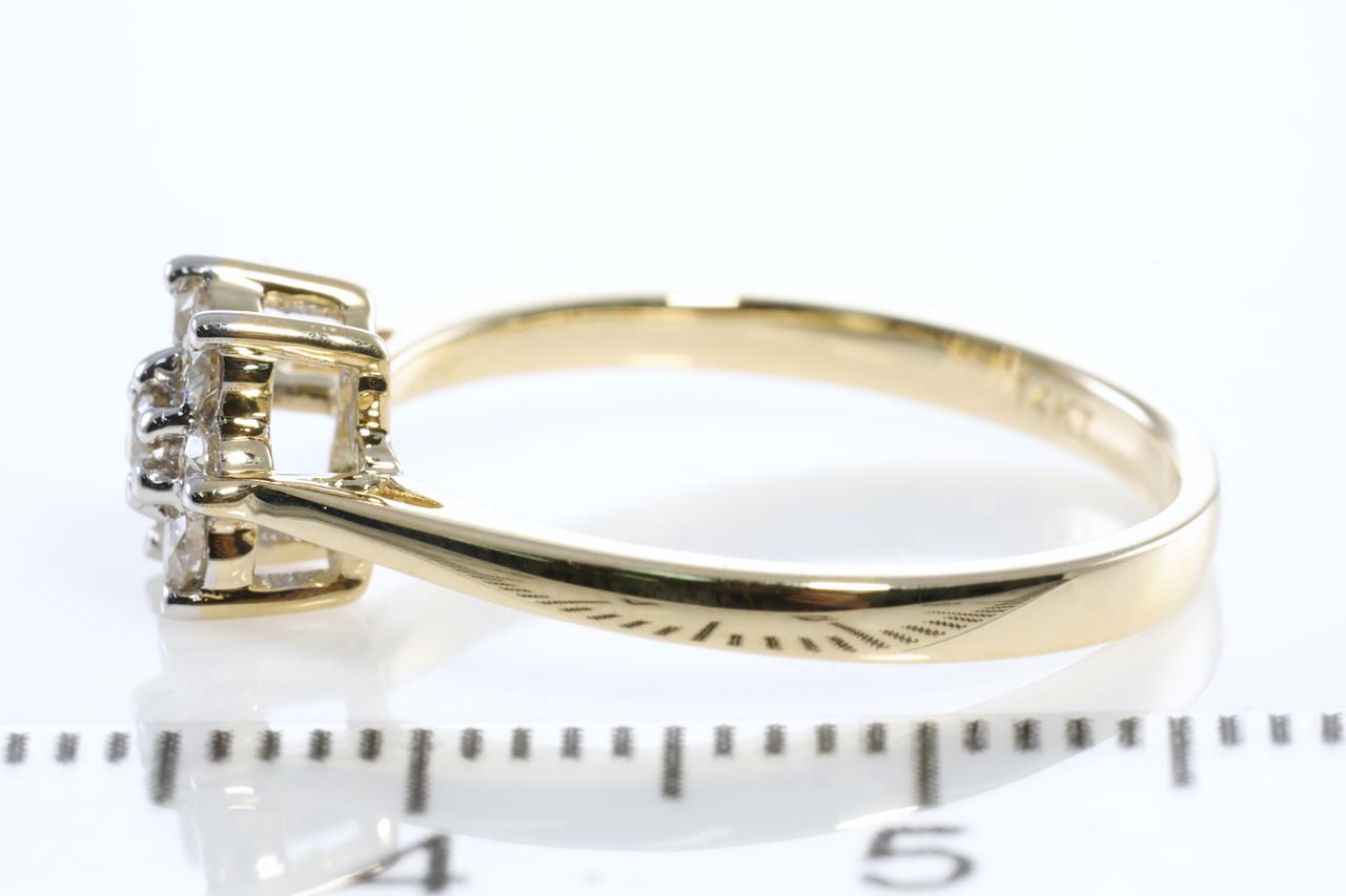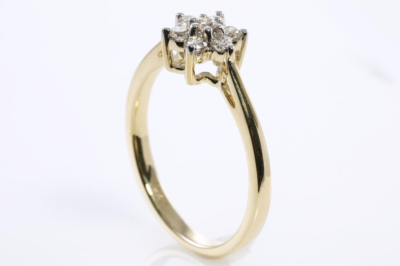 Diamond ring with round Diamonds totalling 0.25cts (Estimated grading: H SI). 14ct yellow gold. Ring size: L. Weight: 2.2g (New)