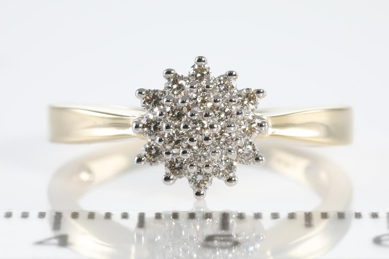 Diamond ring with round Diamonds totalling 0.25cts (Estimated grading: H SI) 14ct yellow gold Ring size L. Weight: 2.3g (New)