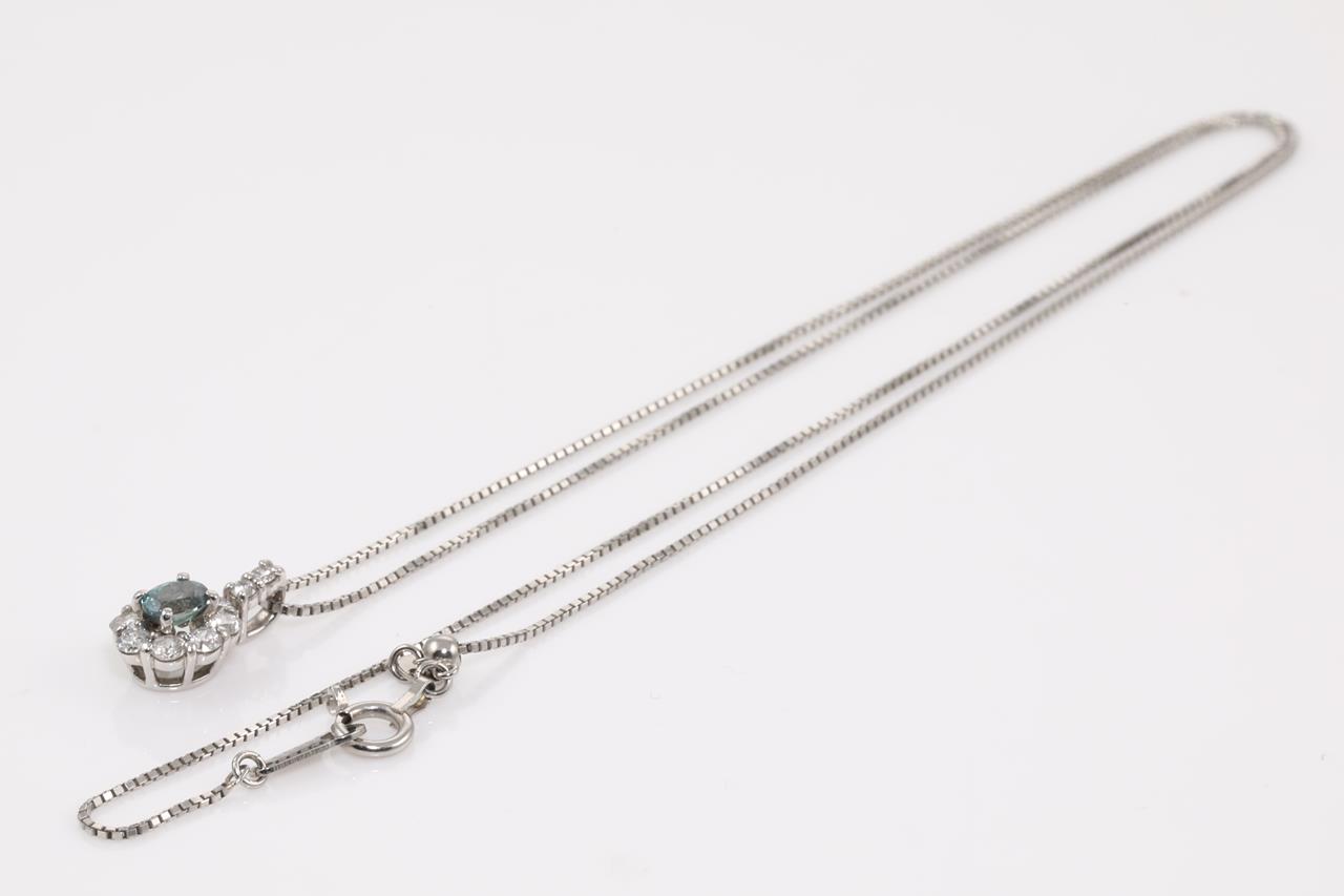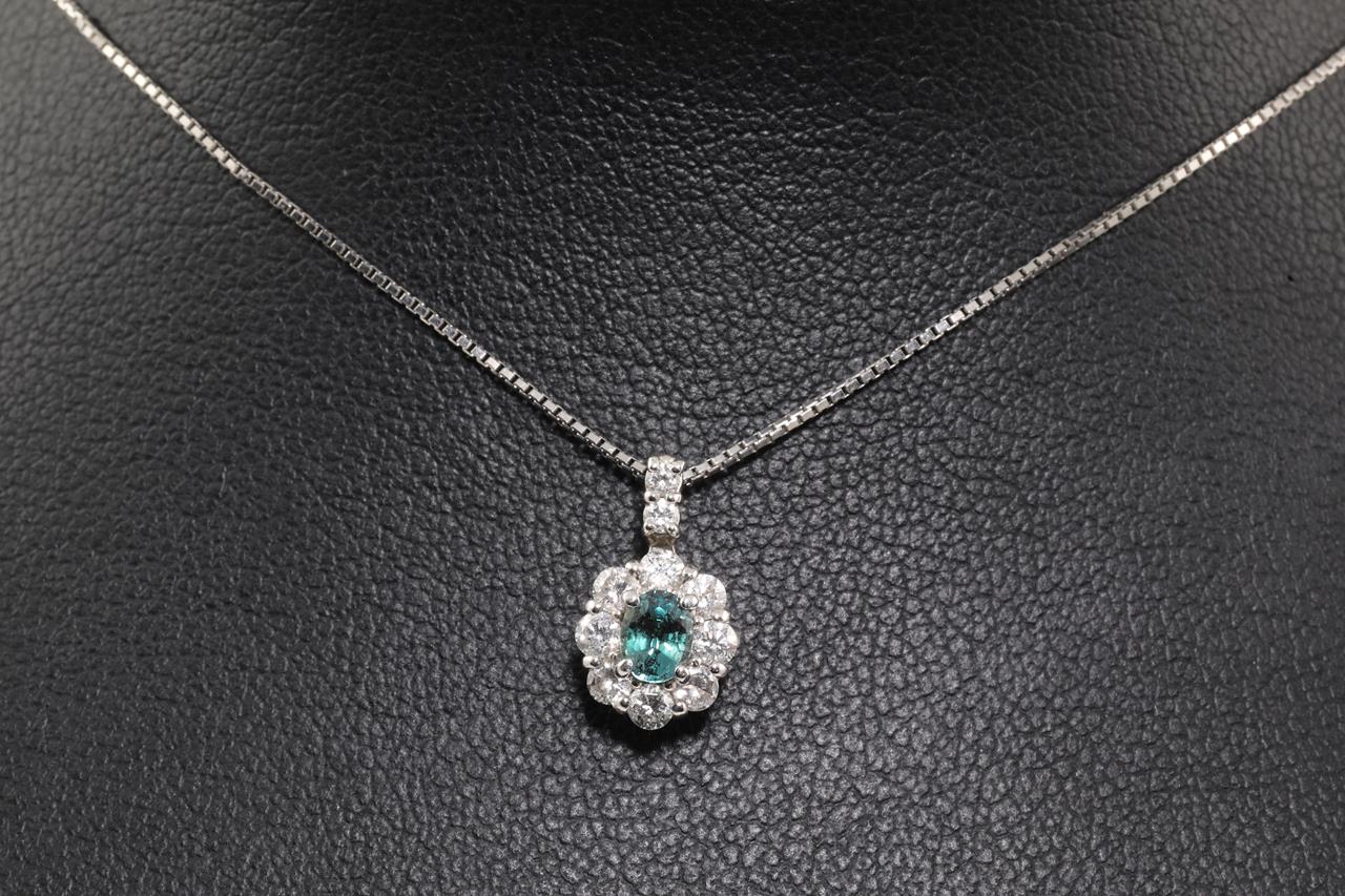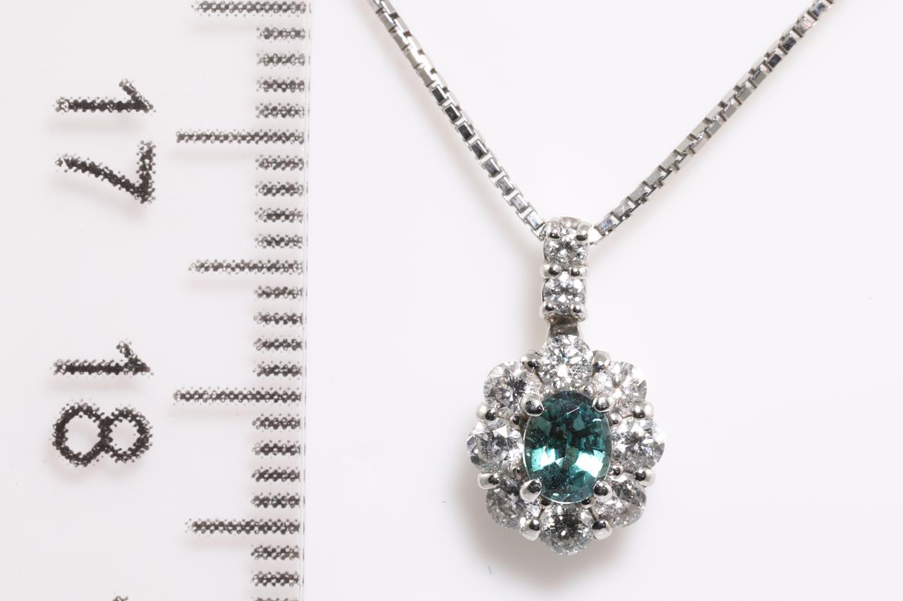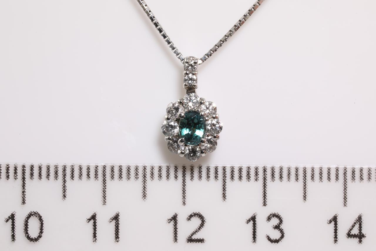 Alexandrite and Diamond pendant with an oval Alexandrite of 0.27ct and Diamonds totalling 0.34cts (Estimated grading: G-H SI-P1). Platinum with 45cm chain. Weight: 3.6g (Pre-owned)