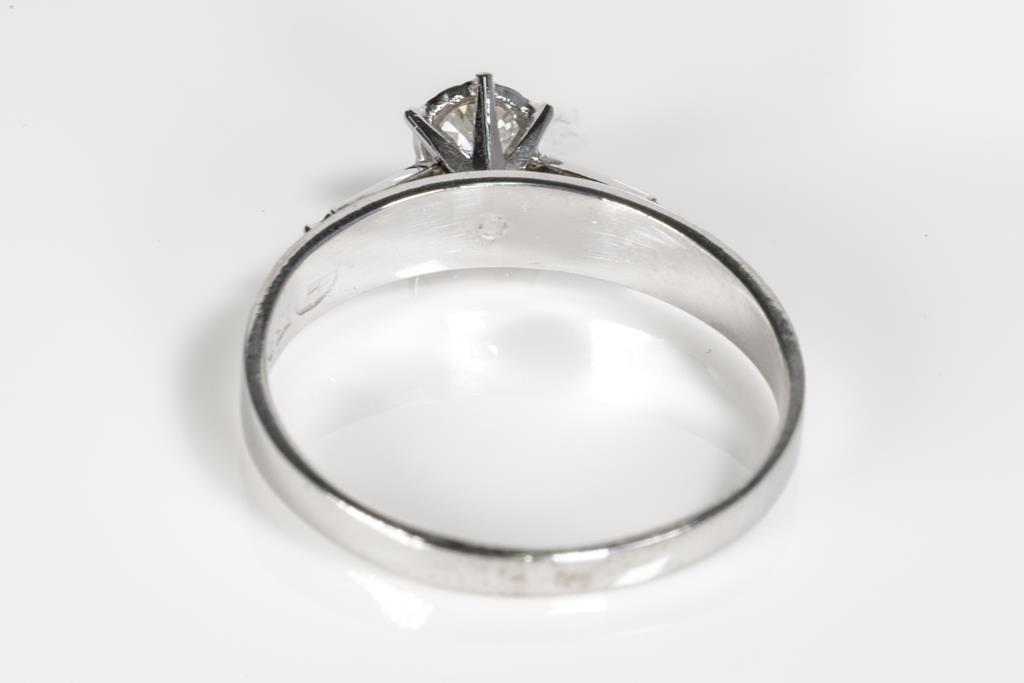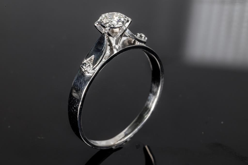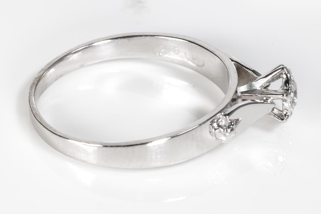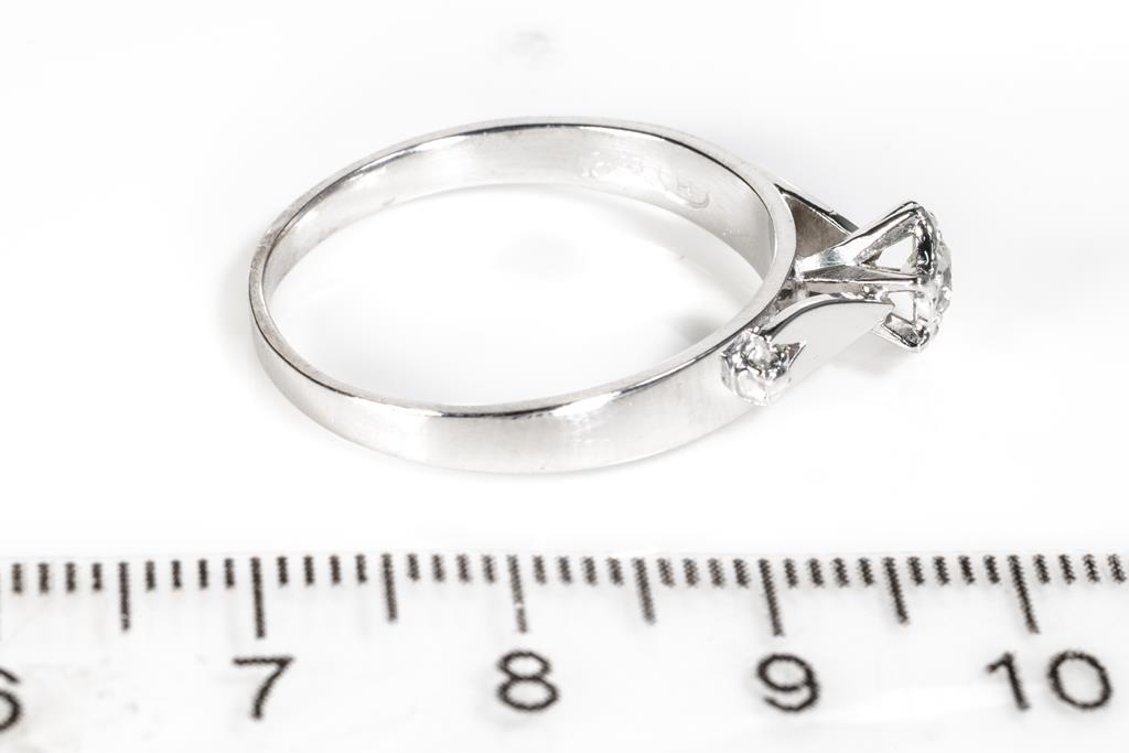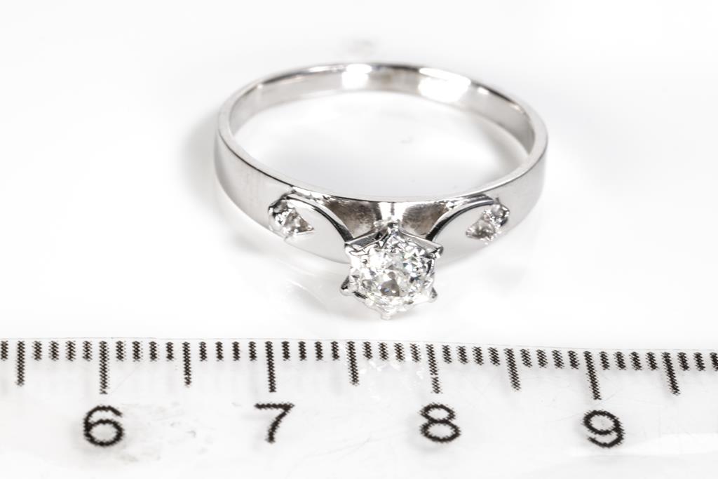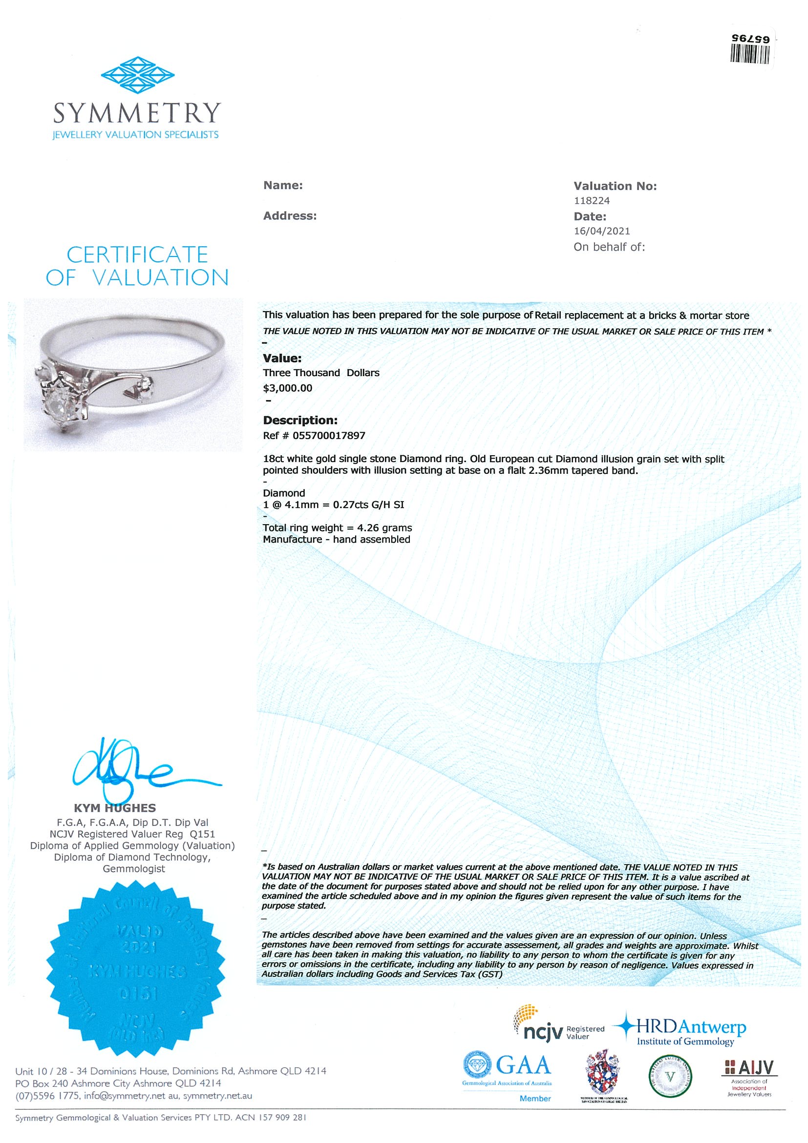 Diamond Solitaire ring with illusion setting Old European cut Diamond of approximately 0.27ct (Estimated grading G-H SI). 18ct white gold. Ring size V. Weight 4.2g. With Valuation. (Pre-owned)