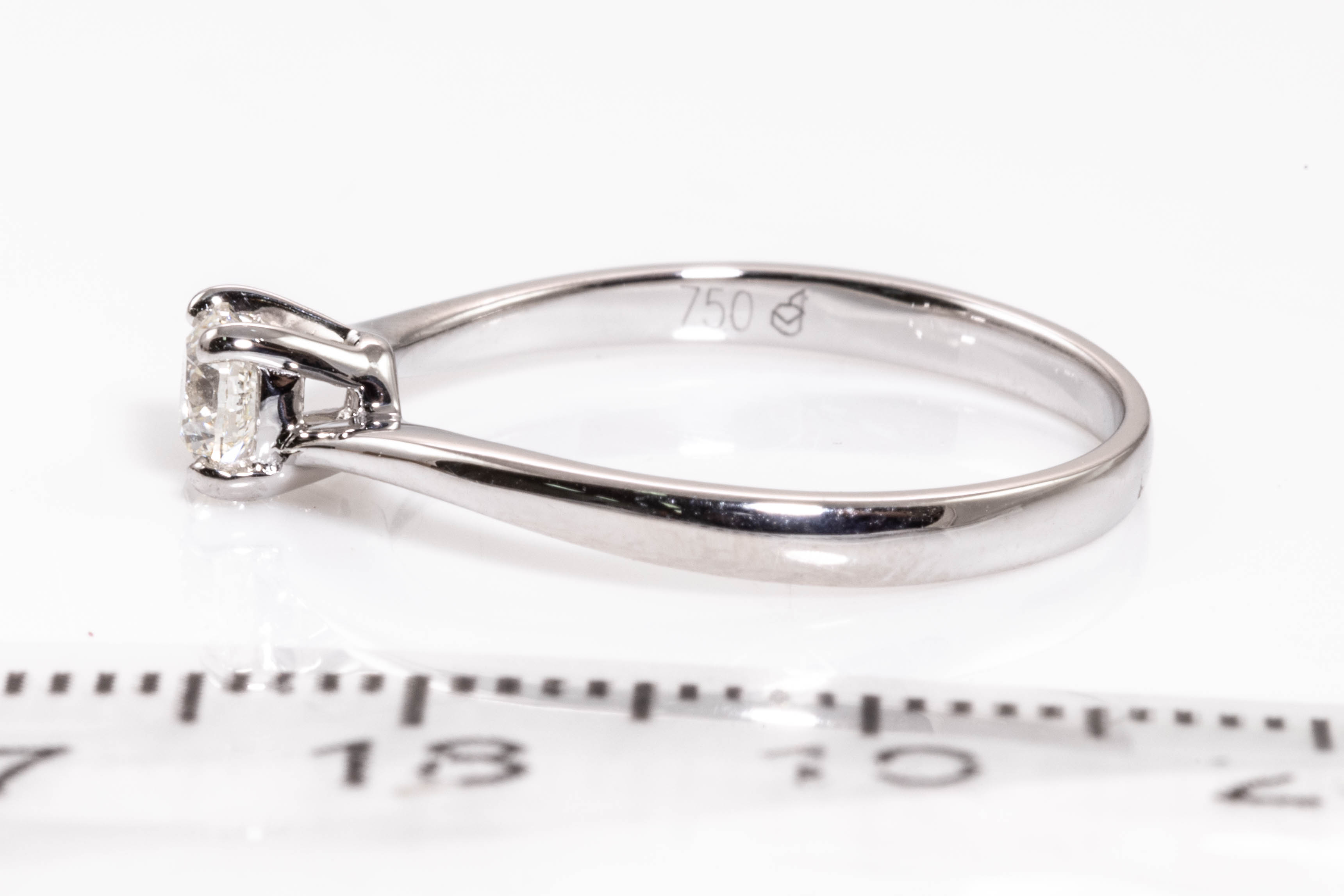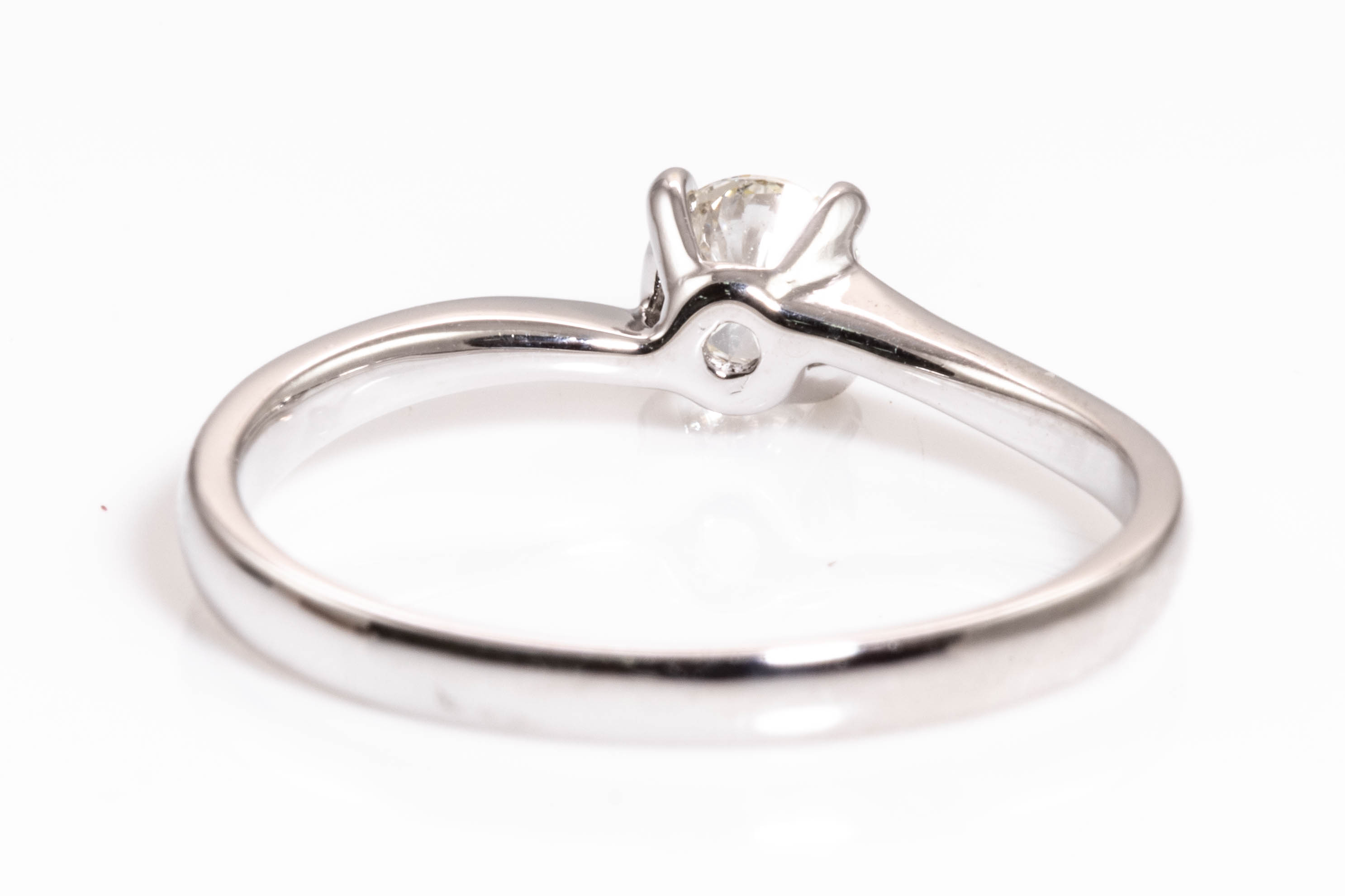 Diamond solitaire ring with round cut Diamond of 0.27ct (Estimated grading G VS). 18ct white gold. Ring size M. Weight 2.1g. With Valuation #123145. (Pre-owned)