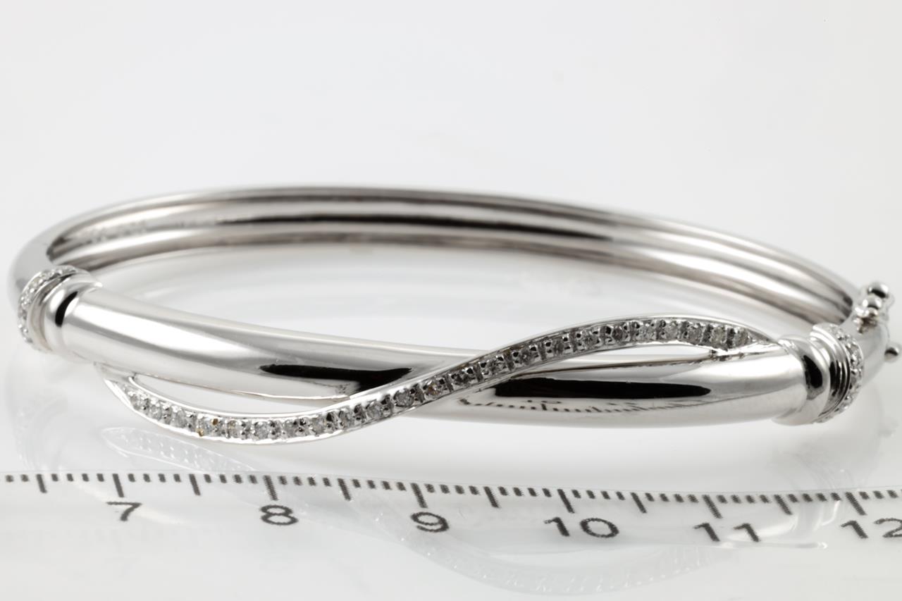 Diamond bangle with round Diamonds totalling 0.28cts. 18ct white gold. Inner circumference: 17cm. Weight: 16.3g (Pre-owned)