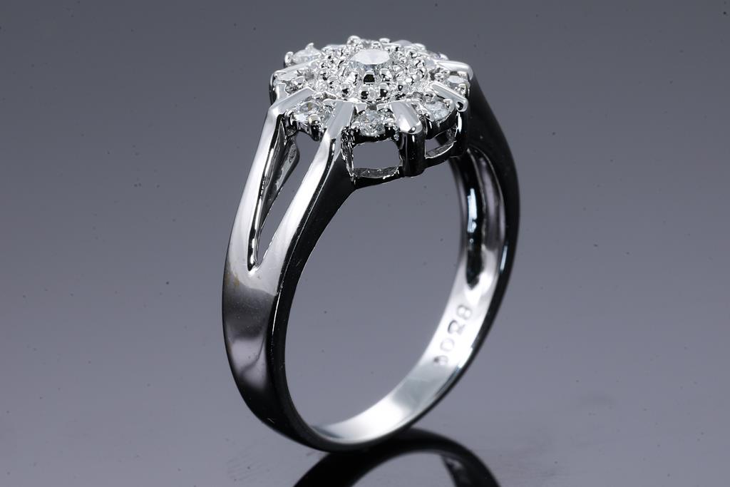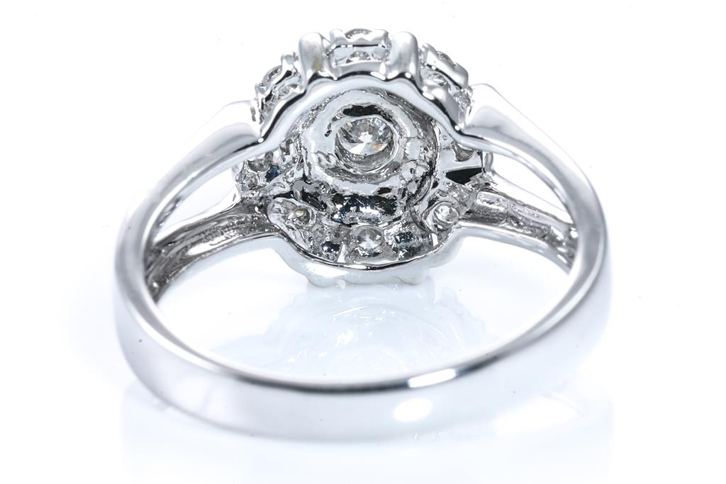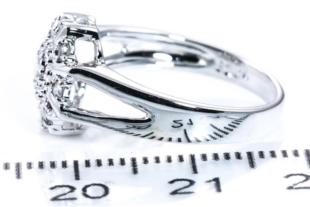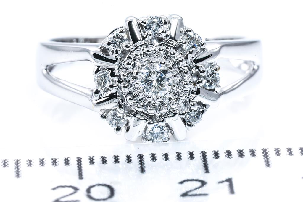Diamond ring with round cut Diamonds totalling approximately 0.28cts (Estimated grading H-I SI-P1). 18ct white gold. Ring size L 1/2. Weight 4.2g. (Pre-owned)