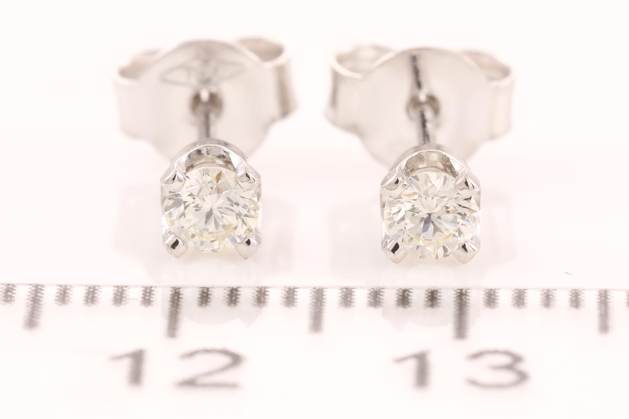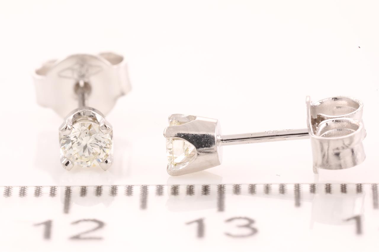 Diamond stud earrings with 2 round Diamonds totalling 0.28cts (Estimated grading: J VS-SI). 18ct white gold. Weight: 1.1g. (New)