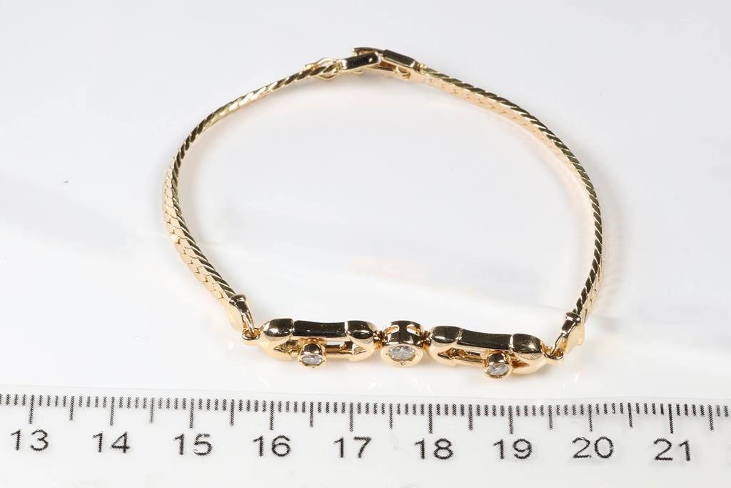 Diamond Bracelet with 3 round Diamonds totalling 0.29cts. 18ct yellow gold. Length: 18cm. Weight: 12.8g (Pre-owned)