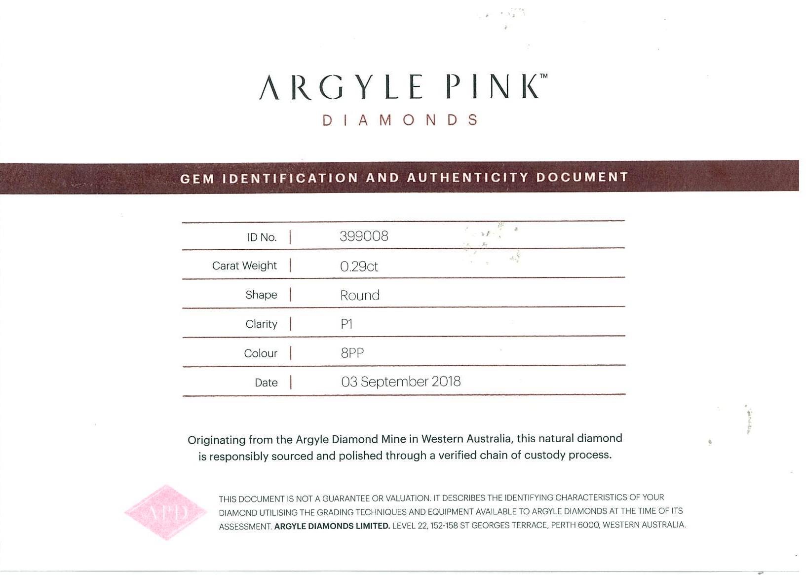 A loose round Argyle Pink Diamond of 0.29ct (with Argyle report graded as 8PP P1 #399008) (New)