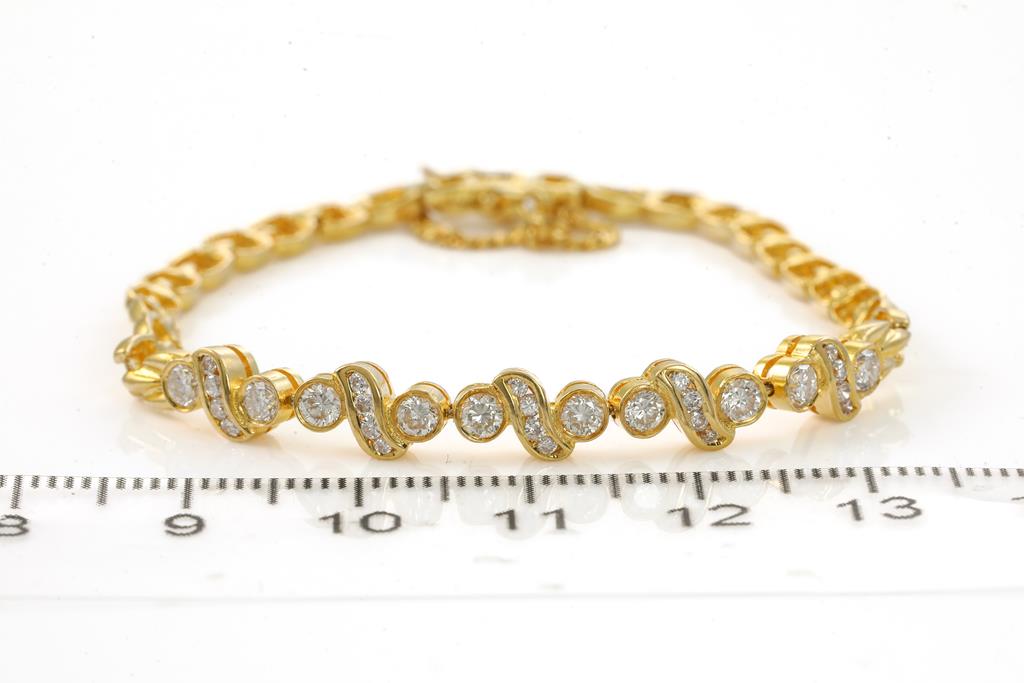 Diamond bracelet with round brilliant cut Diamonds totalling approximately 0.30cts (Estimated grading G-H VS). 20ct yellow gold. Length: 15cm. With safety chain. Weight 9.7g. (Pre-owned)