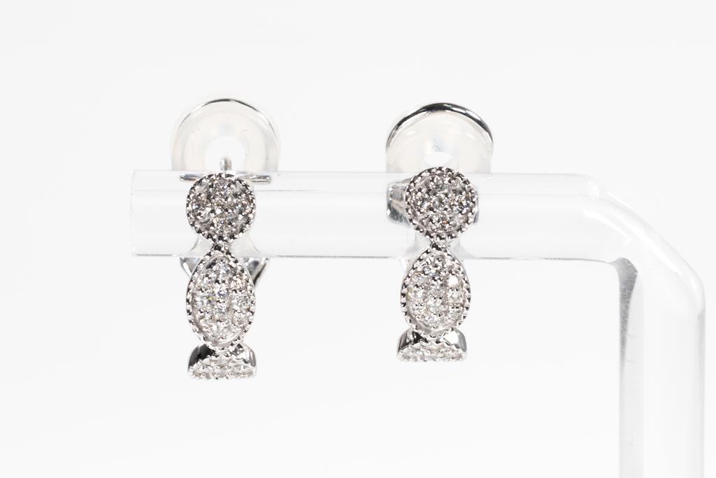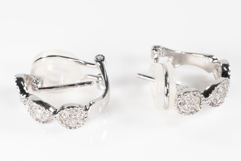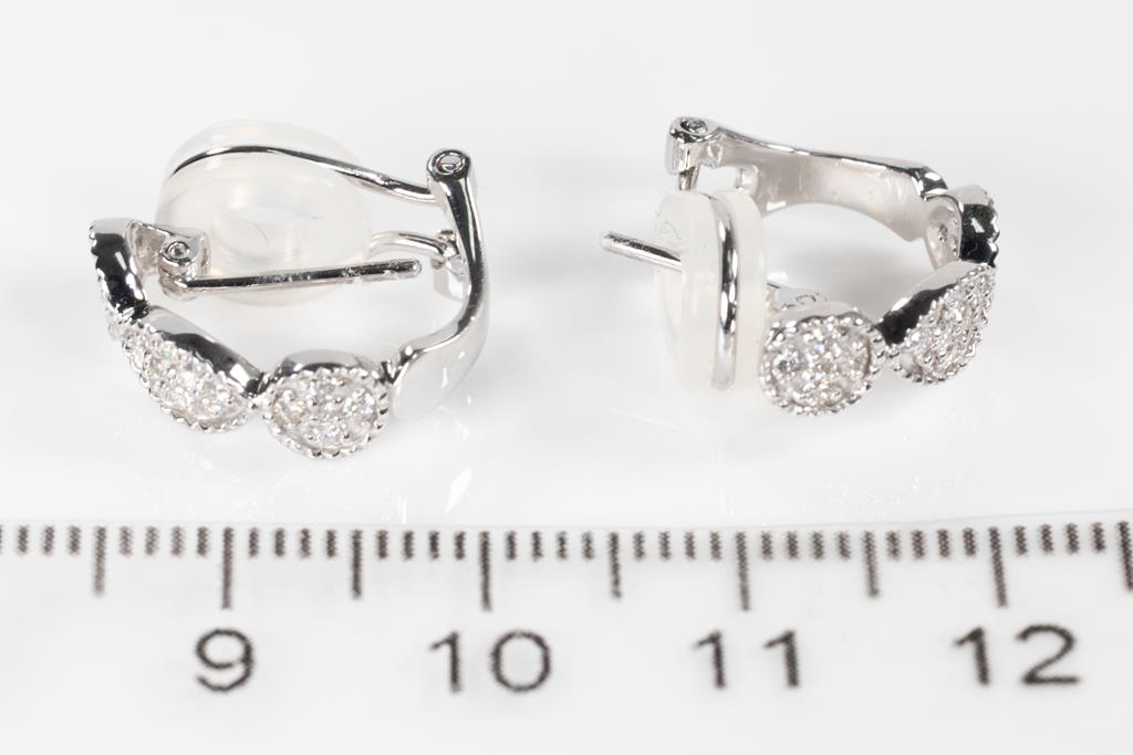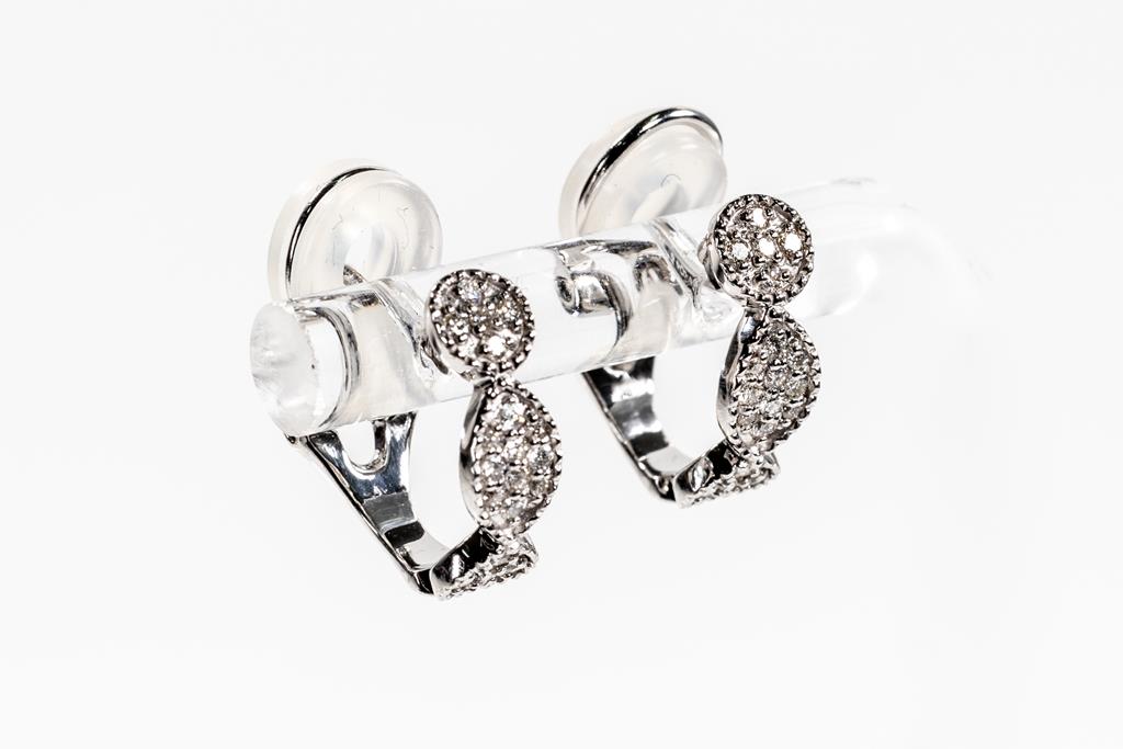 Diamond clip-on earrings (with foldable posts for pierced ears)with round Diamonds totalling 0.30cts (Estimated grading: G-H SI). 18ct white gold. Weight: 4.5g. (Pre-owned)