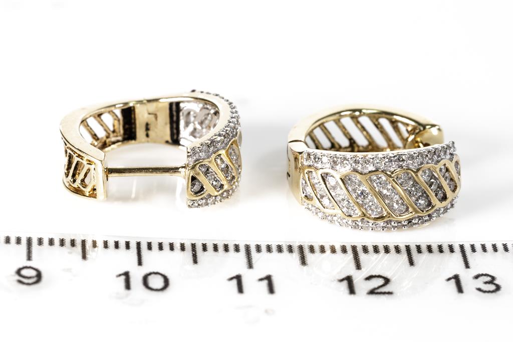 Diamond huggie earrings with round cut Diamonds totalling approximately 0.30cts (Estimated grading H-I SI-P1). 10ct yellow gold. Weight 5.1g. By Michael Hill Jewellery. (Pre-owned)