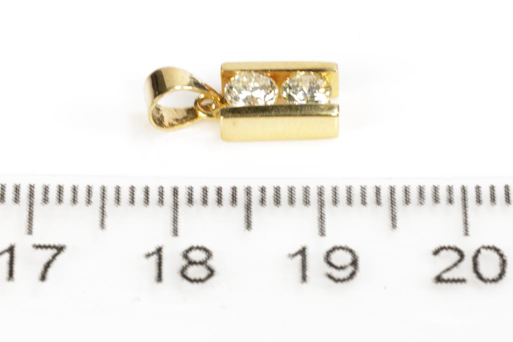 Diamond pendant with two round Diamonds totalling approximately 0.30cts (Estimated grading K-L P1). 14ct yellow gold. Weight 1.1g. No chain provided. (Pre-owned)