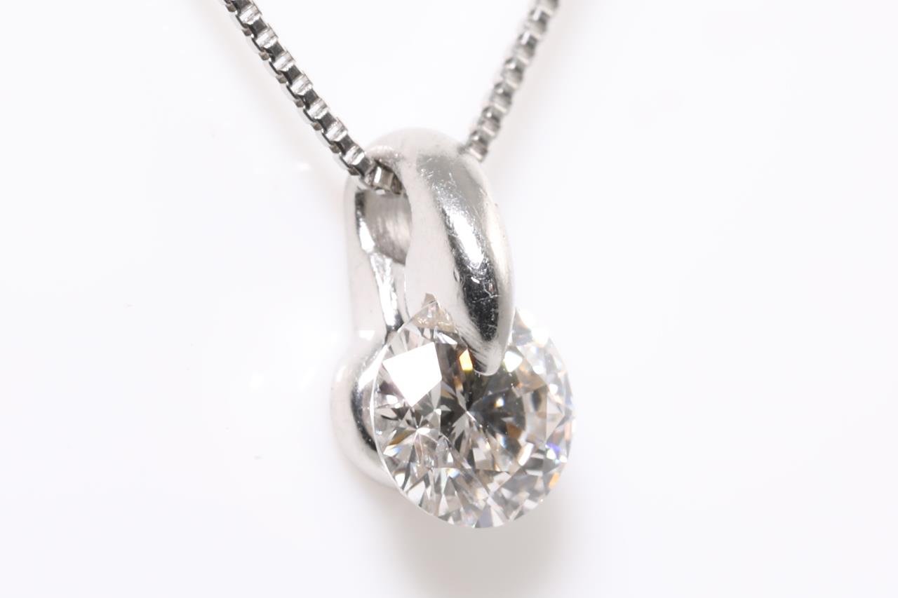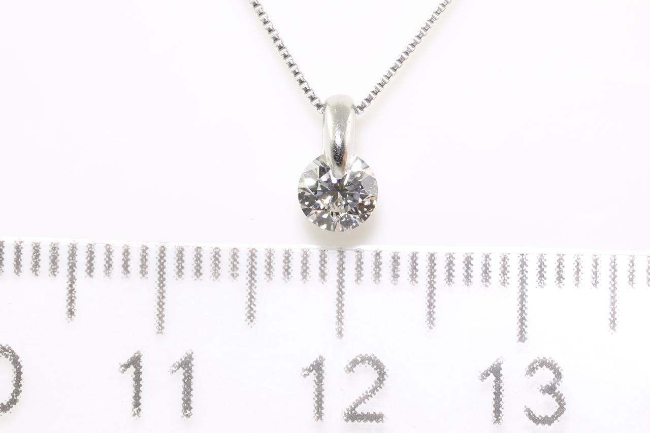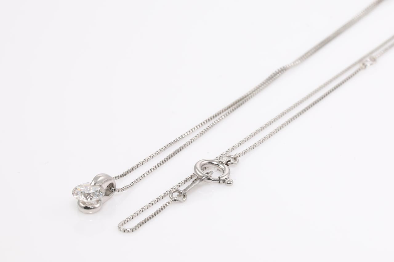 Diamond solitaire pendant with a round Diamond of 0.30cts (Estimated grading: H SI). Platinum with adjustable 41cm chain. Weight: 1.6g (Pre-owned)
