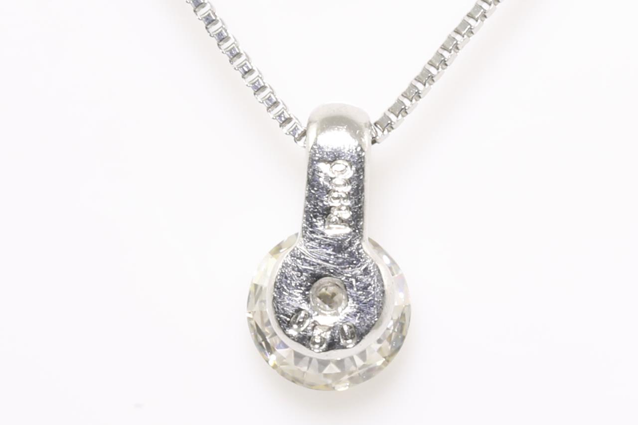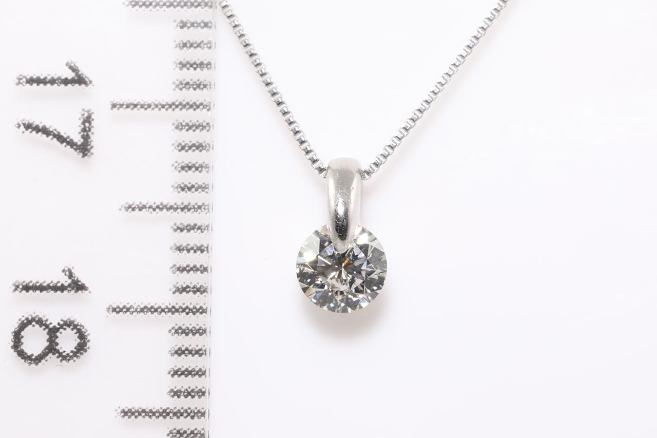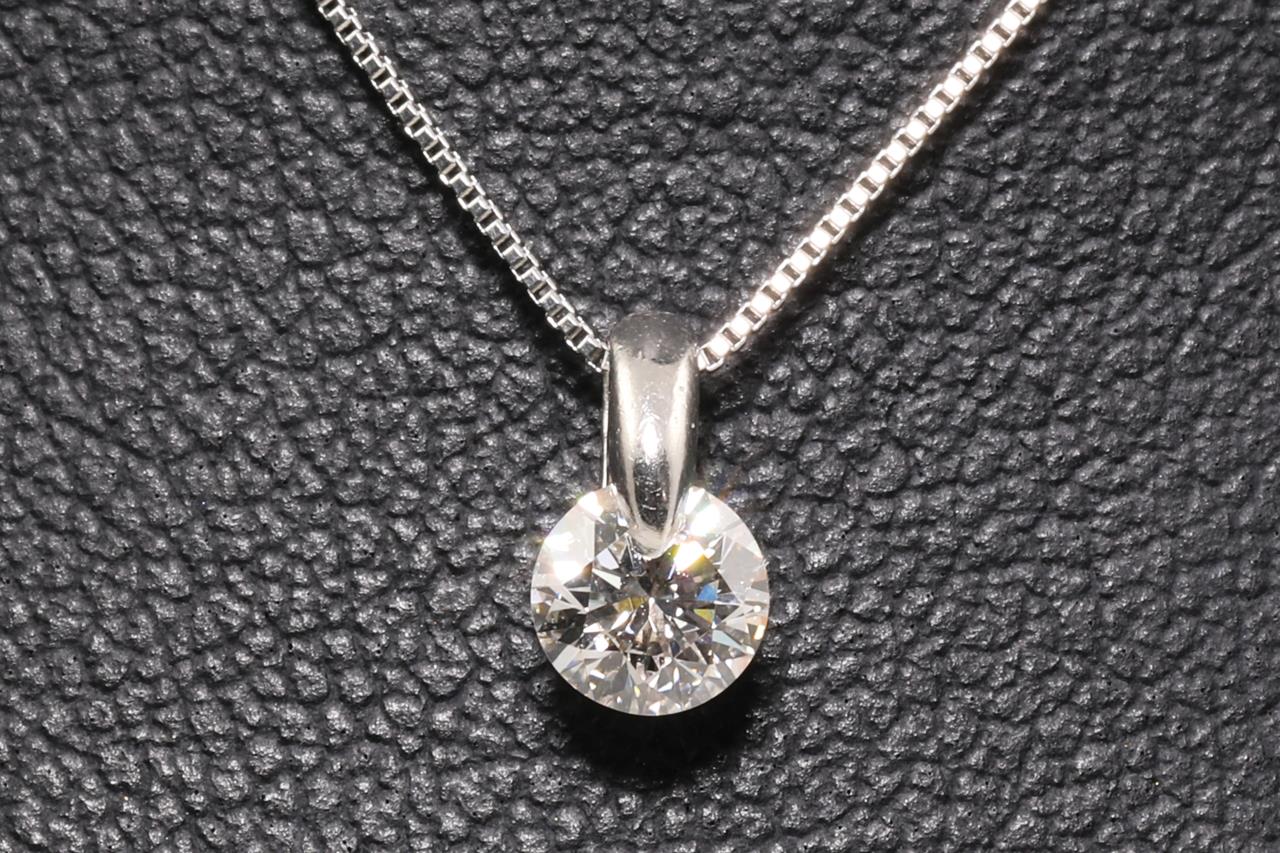Diamond solitaire pendant with a round Diamond of 0.30cts (Estimated grading: H SI). Platinum with adjustable 41cm chain. Weight: 1.6g (Pre-owned)