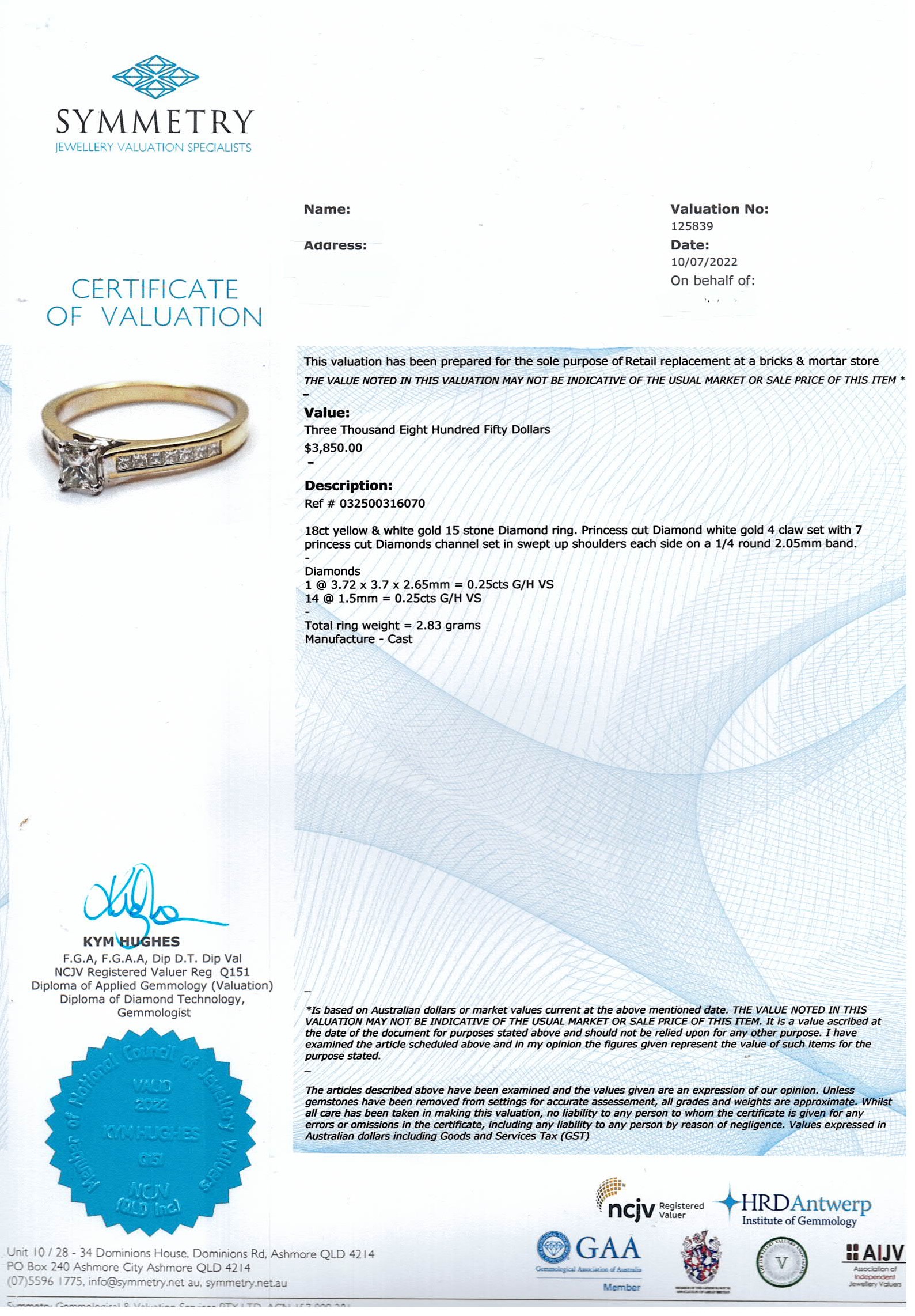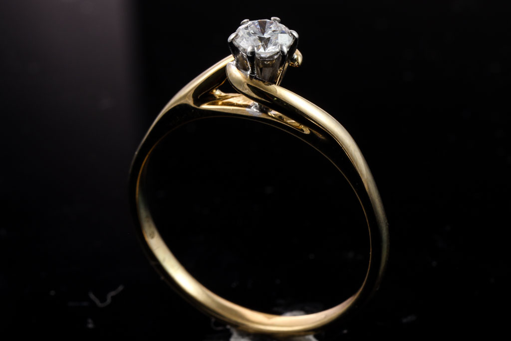 Diamond Solitaire ring with round Diamond of 0.30ct (Estimated grading: G-H VS). 18ct yellow and white gold. Ring size S 1/2. Weight: 3.3g. With Valuation Certificate #032500315875.