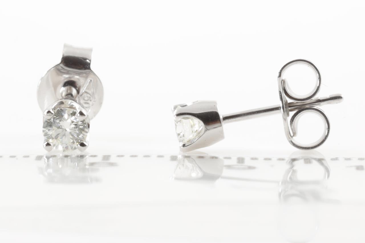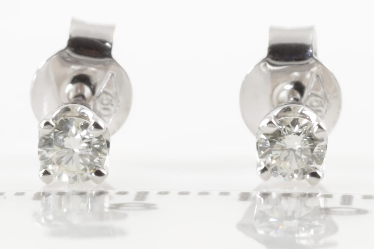 Diamond stud earrings with 2 round Diamonds totalling 0.30cts (Estimated grading: I VS-SI). 18ct white gold. Weight: 1.2g. (New)