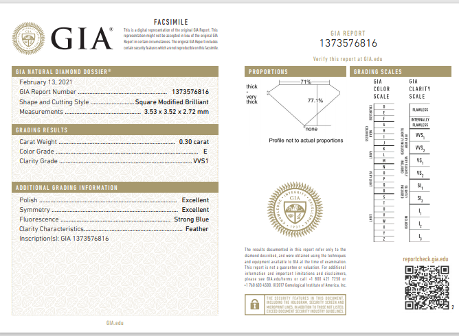 A loose princess cut Diamond of 0.30ct (with GIA report graded as E VVS1 #1373576816). (New)