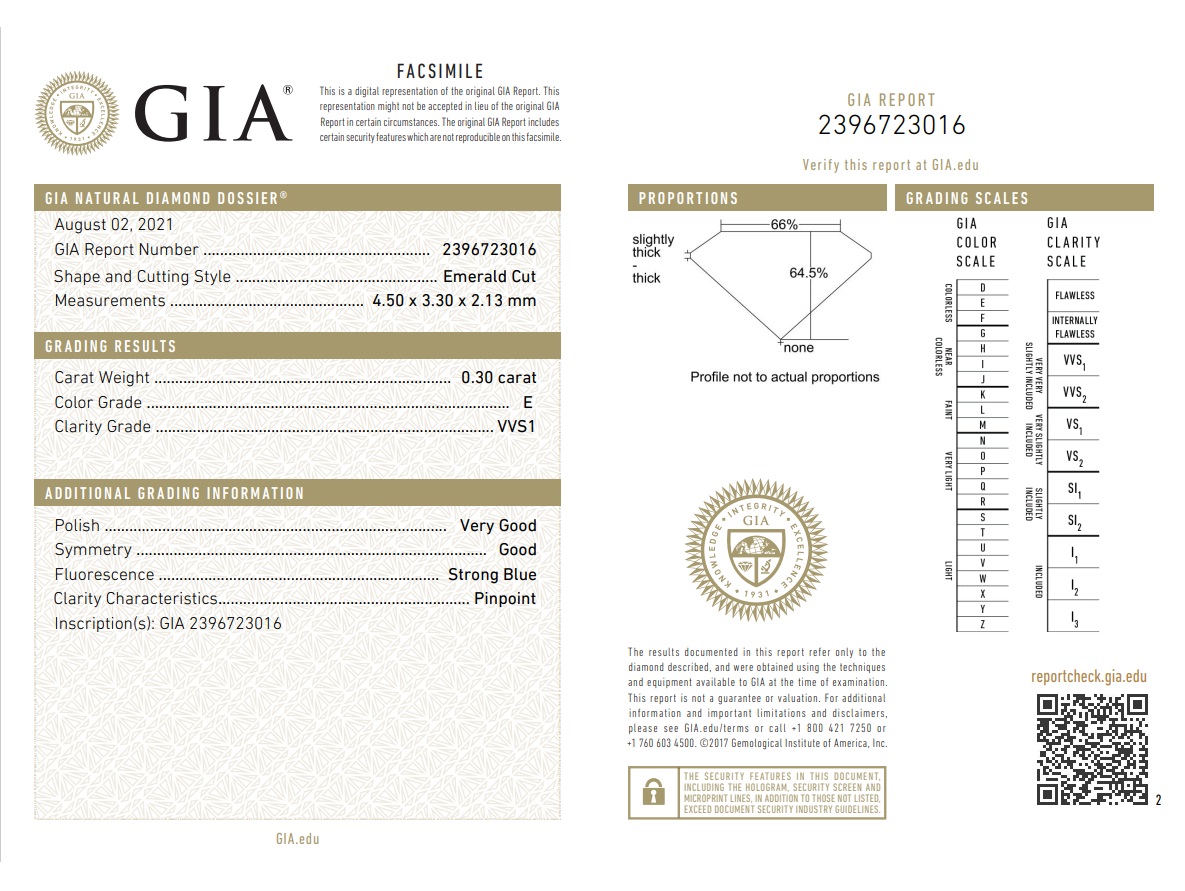 A loose emerald cut Diamond of 0.30ct (with GIA summary report graded as E VVS1 #2396723016). (New)