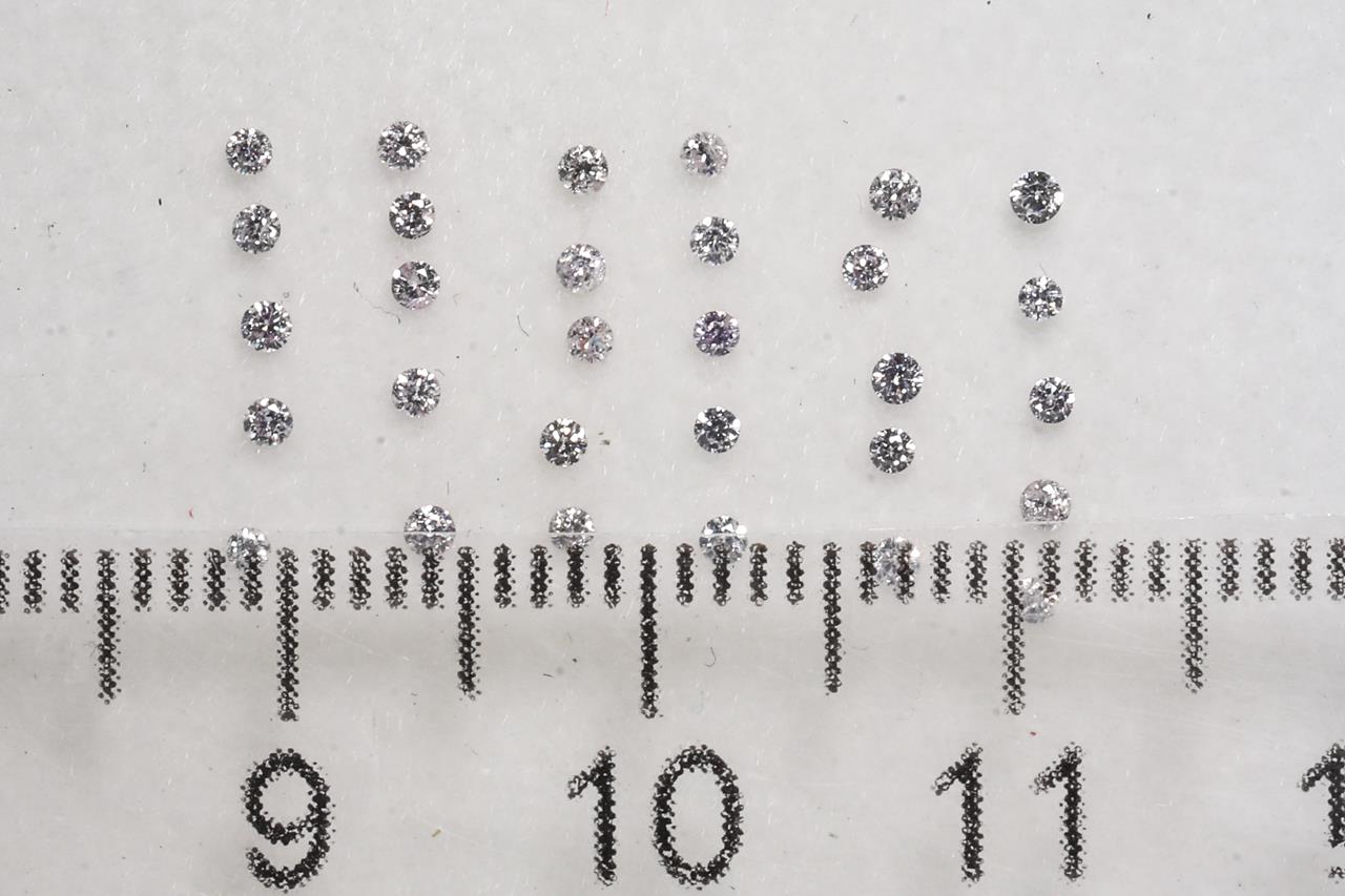 A loose parcel of 30 round brilliant cut Diamonds totalling 0.30cts (Estimated grading: Faint Pink to Light Pink SI-P1). Approximate size: 1.4mm. (Pre-owned)