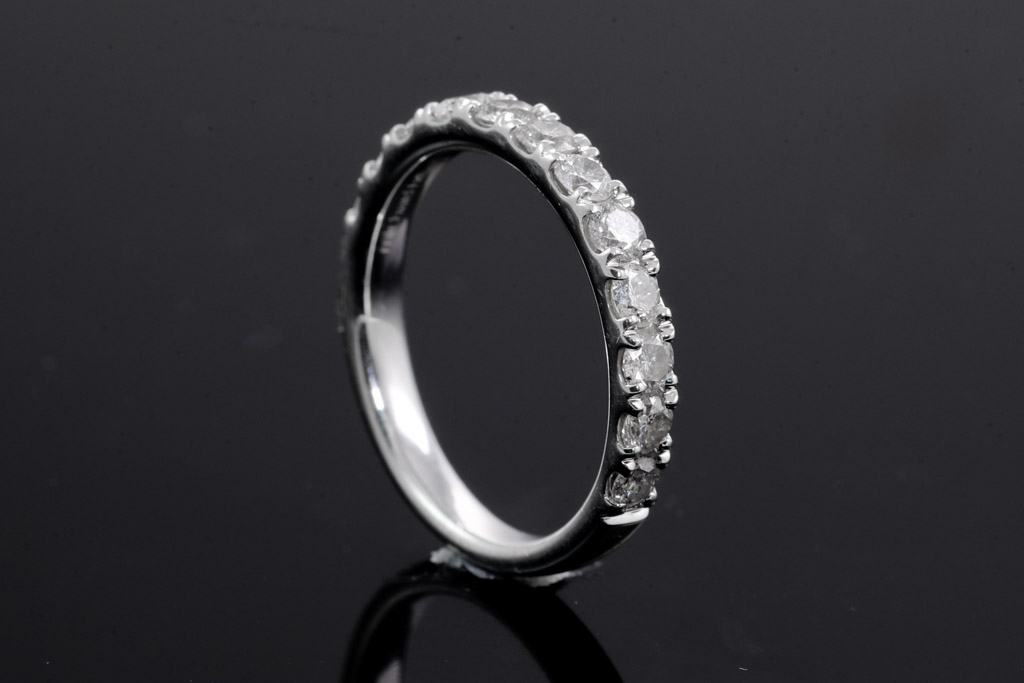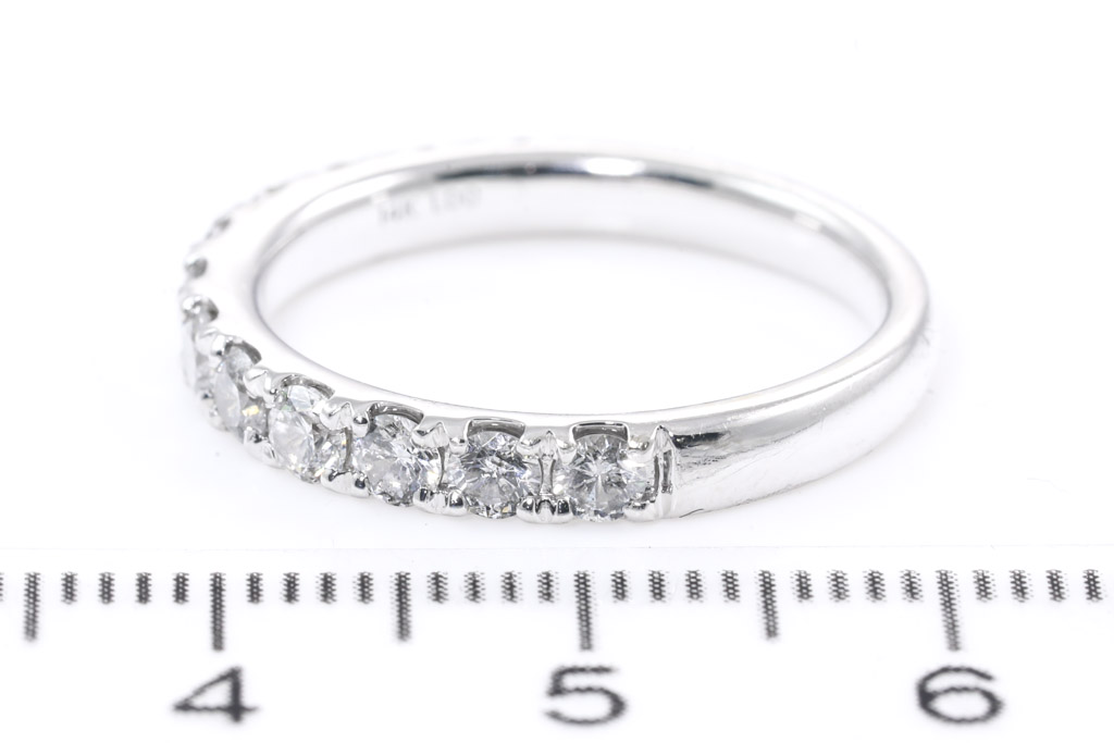 Michael Hill Diamond eternity ring with round Diamonds totalling 1.00cts (Estimated grading: H-I SI). 14ct white gold. Ring size N½. Weight: 3.2g (Pre-owned)