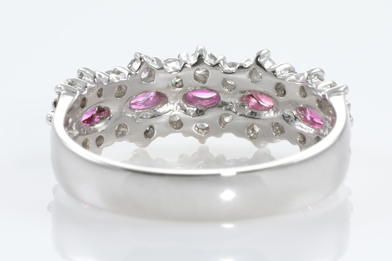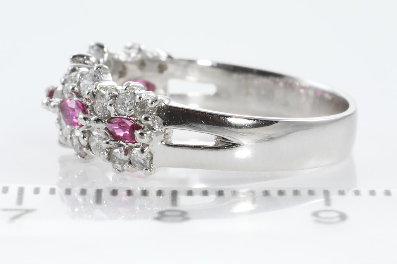 Ruby and Diamond ring with marquise cut Rubies totalling approximately 0.30cts and Diamonds totalling 1.01cts (Estimated grading: H SI). Platinum. Ring size N. Weight: 5.5g (Pre-owned).