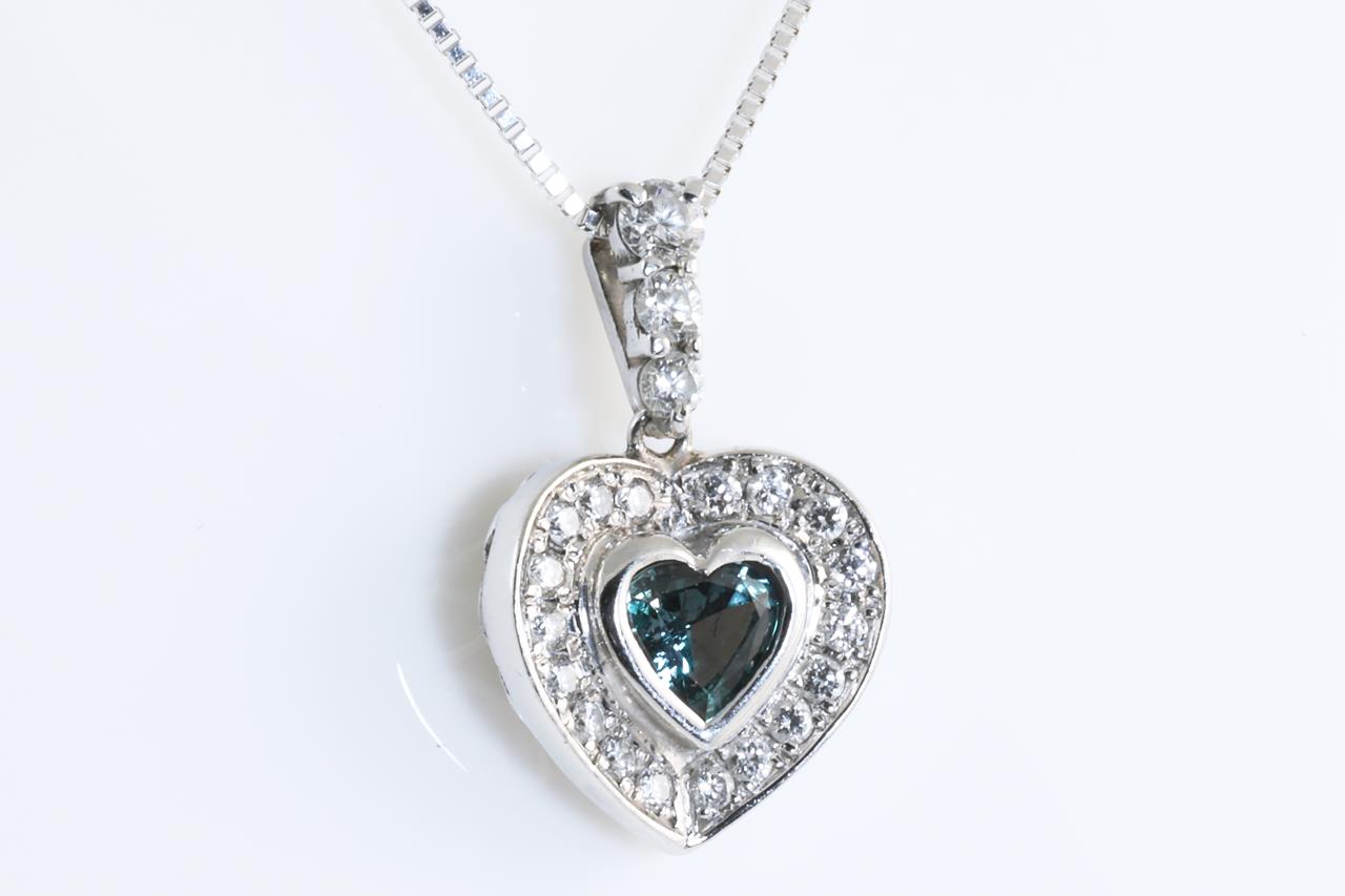 Alexandrite with Diamond pendant with a heart shape Alexandrite of 0.31ct and Diamonds totalling 0.28cts. Platinum with 18ct white gold adjustable 44cm chain. Weight: 3.0g (Pre-owned)