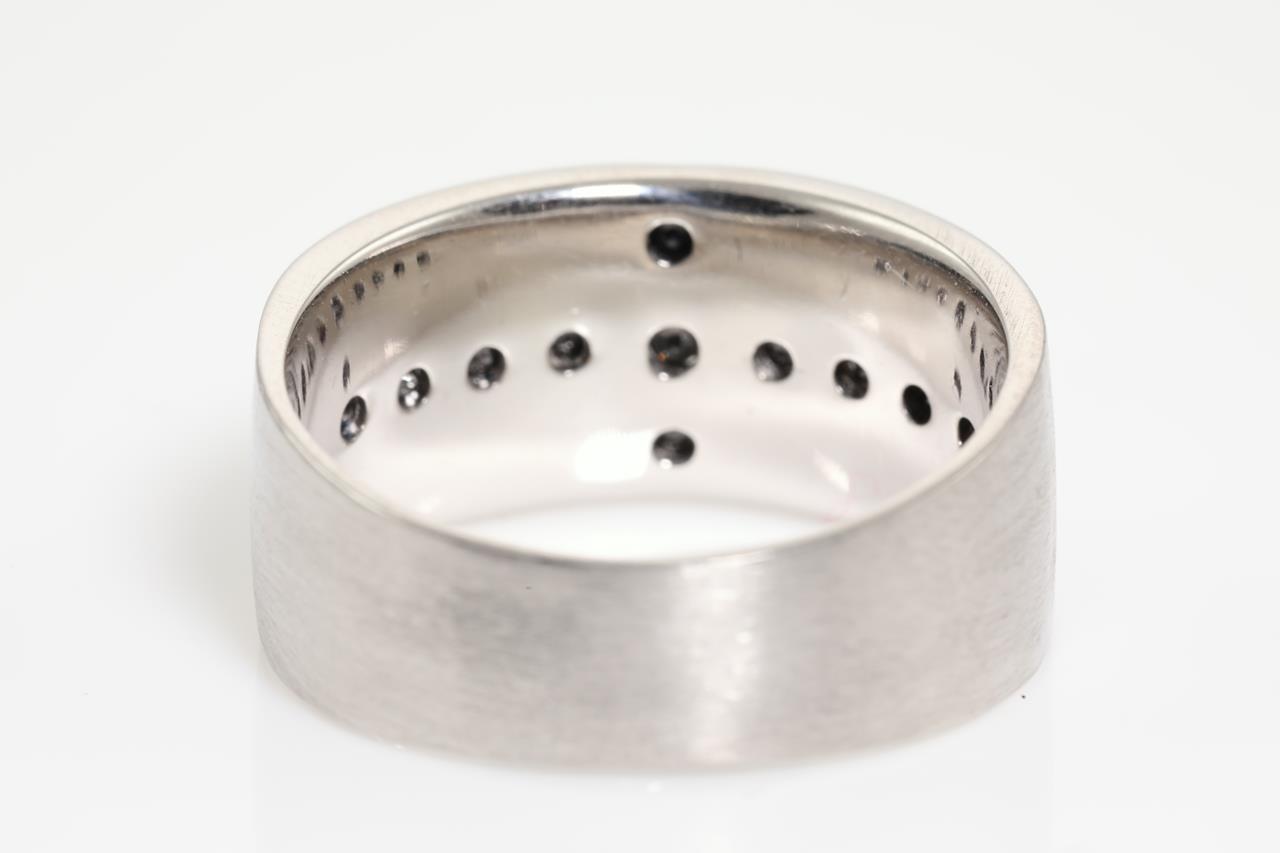 Mens pinky ring with Black Diamonds (colour may be treated) totalling 0.31cts. Platinum. Ring size L - ring resizing is not recommended. Weight: 9.4g (Pre-owned)