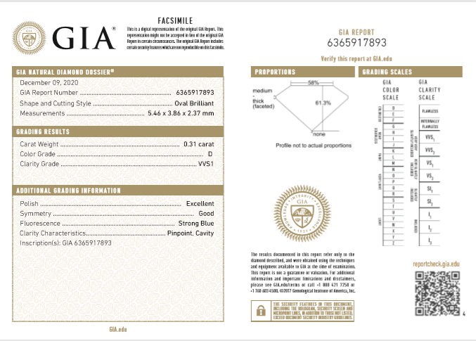 A loose oval shape Diamond of 0.31ct (with GIA report graded as D VVS1 #6365917893). (New)