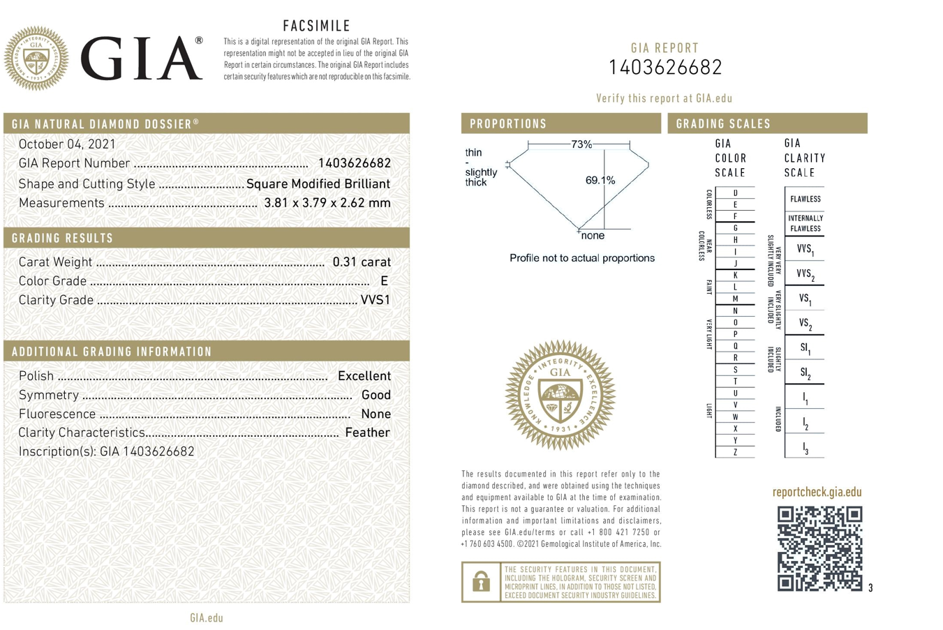 A loose princess cut Diamond of 0.31ct (with GIA summary report graded as E VVS1#1403626682). (New)