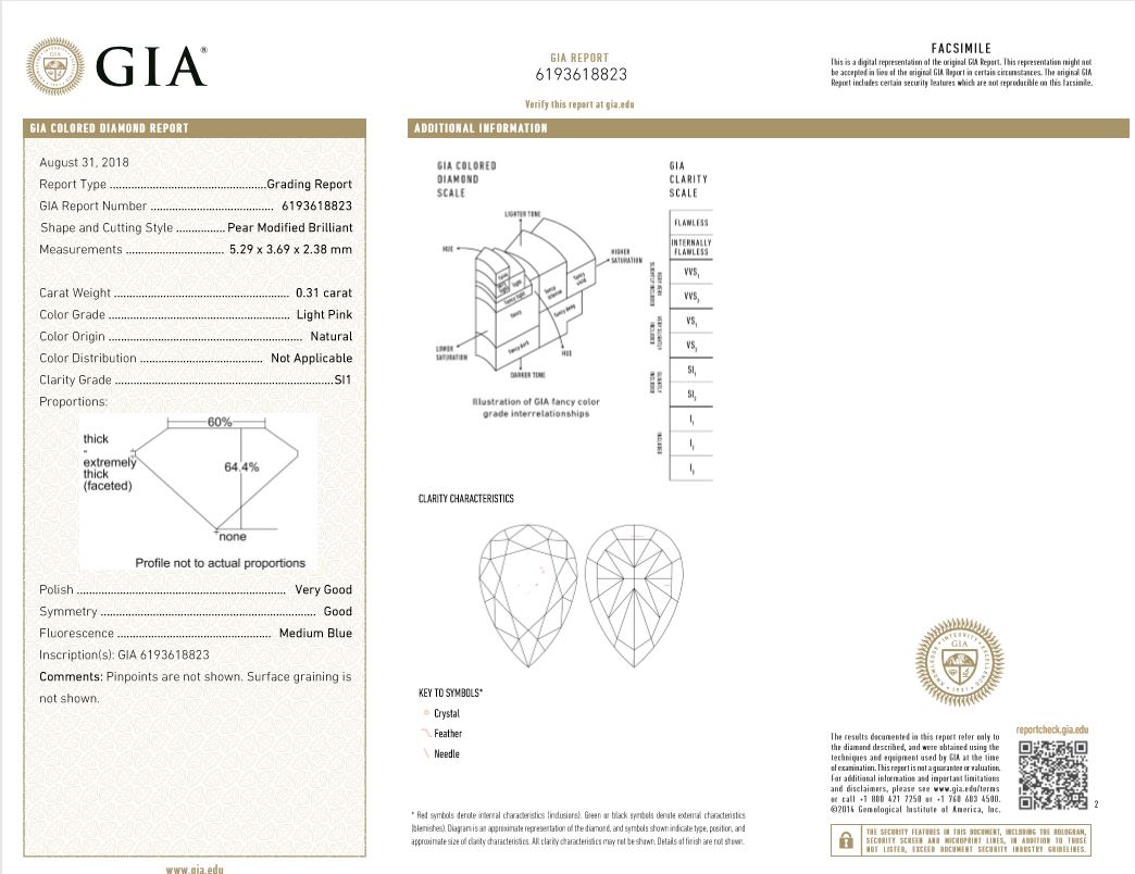 A loose Pear Shape Diamond of 0.31ct (with GIA report graded as Natural Light Pink SI1 #6193618823). (New)