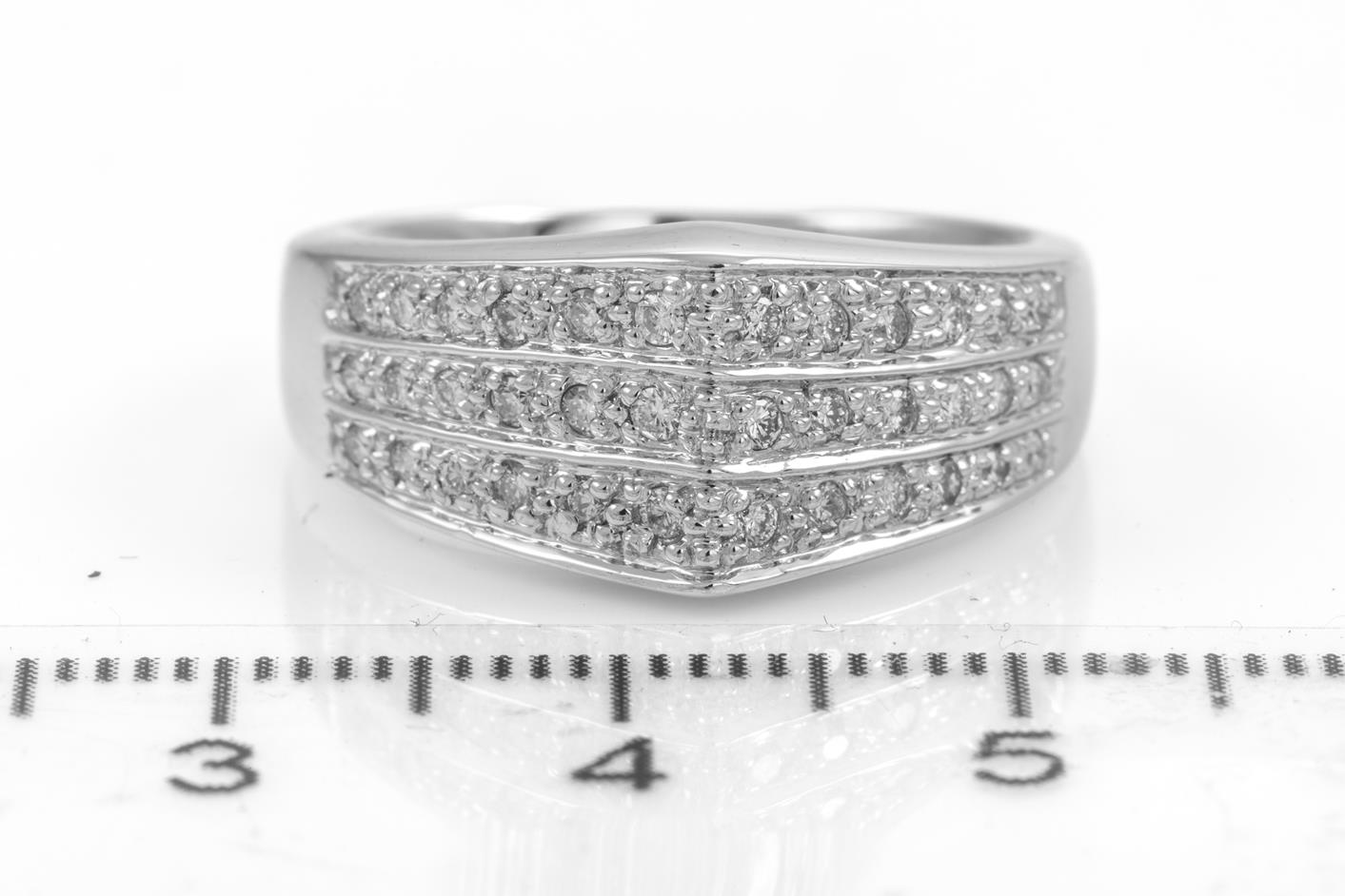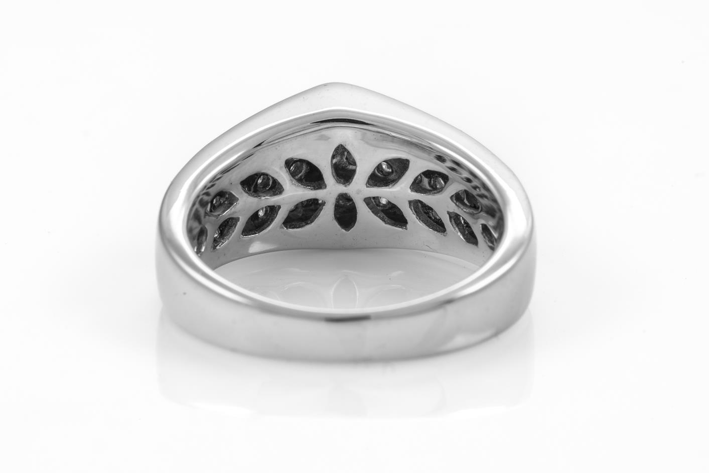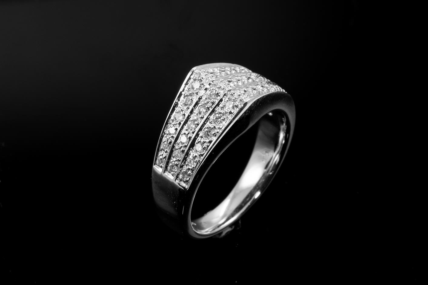 Diamond dress ring with round Diamonds totalling 0.33cts (Estimated grading: G-H SI). 18ct white gold. Ring size O. Weight: 9g. (Pre-owned)