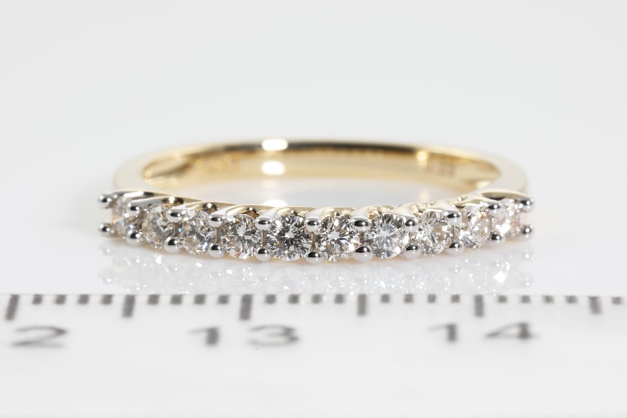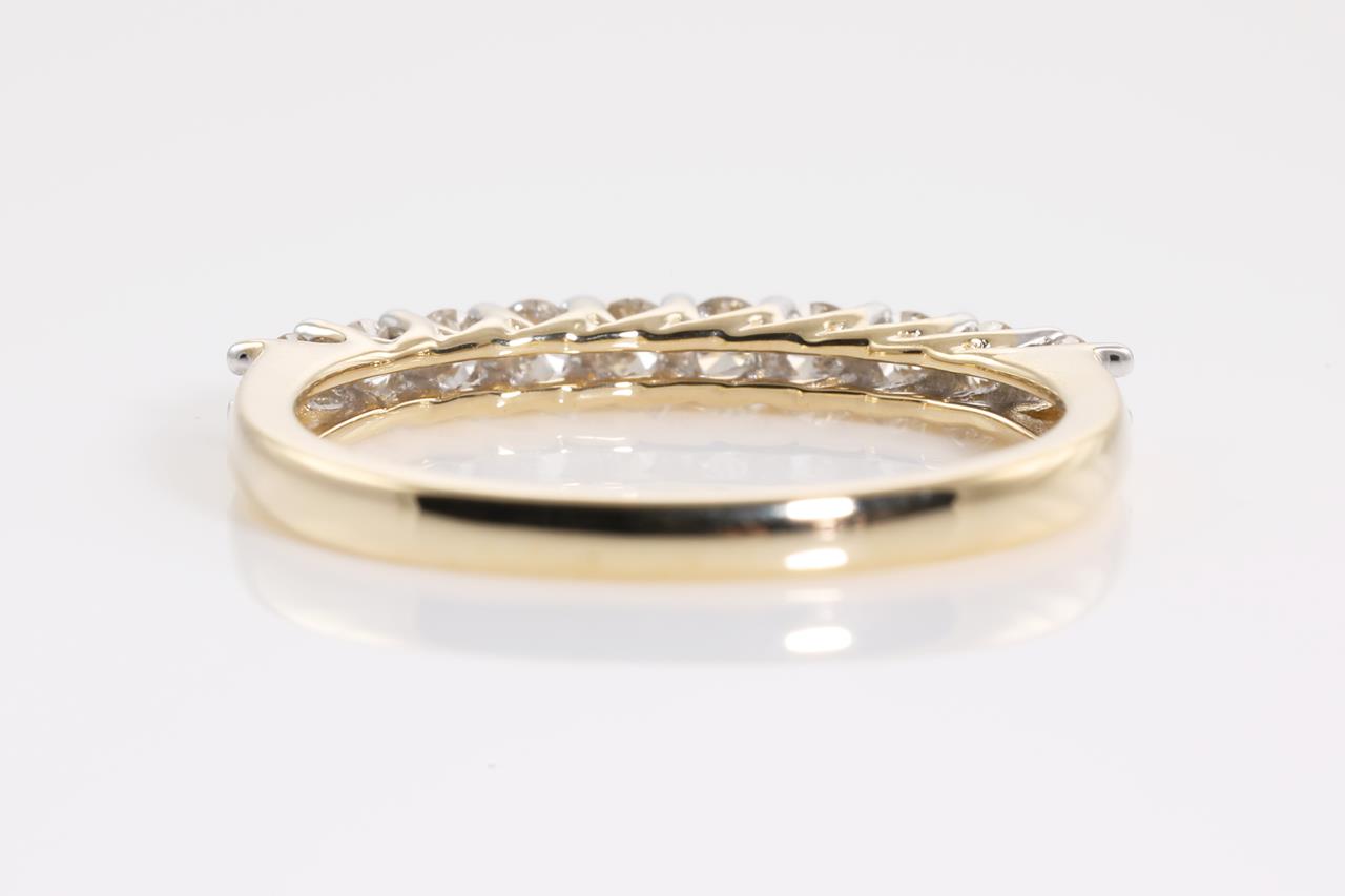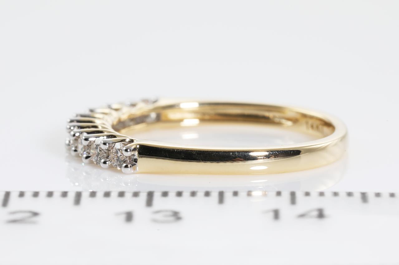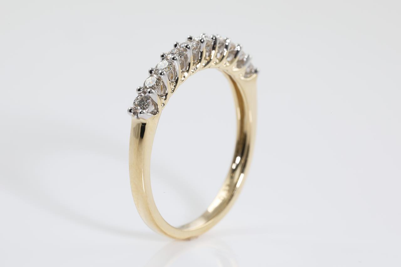 Diamond eternity ring with 10 round Diamonds totalling 0.33cts (Estimated Grading: H SI). 14ct yellow gold. Ring size L - can be resized up by a maximum of 3 sizes, down with ring clip. Weight:1.8g (New)
