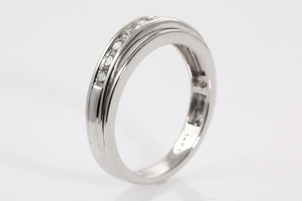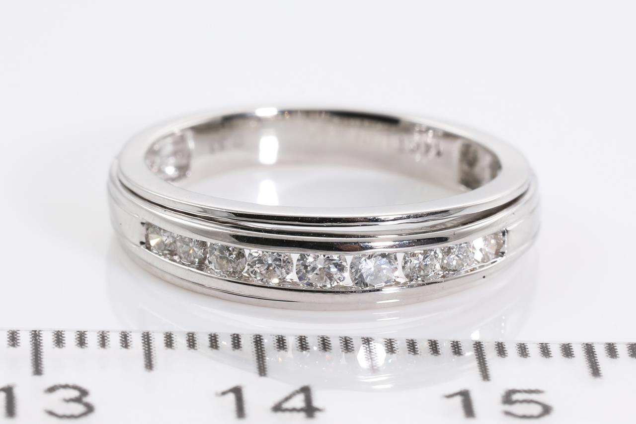Diamond eternity ring with 9 round Diamonds totalling 0.33cts (Estimated Grading: H SI). 14ct white gold. Ring size K. Weight: 3g (New).