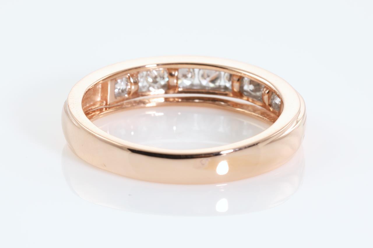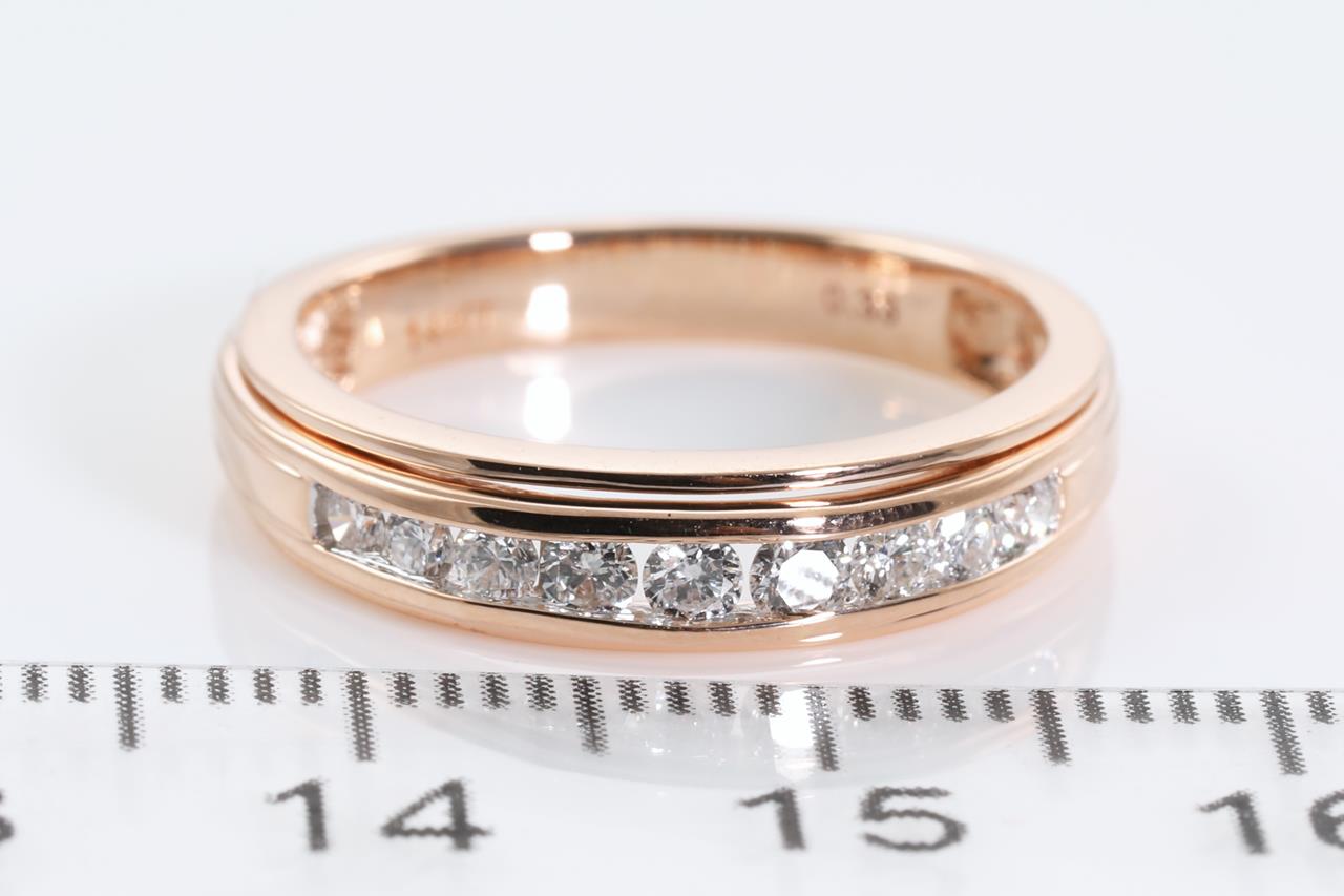 Diamond eternity ring with 9 round Diamonds totalling 0.33cts (Estimated Grading: H SI). 14ct rose gold. Ring size M - cannot be resized up, down with ring clip. Weight: 2.8g (New).