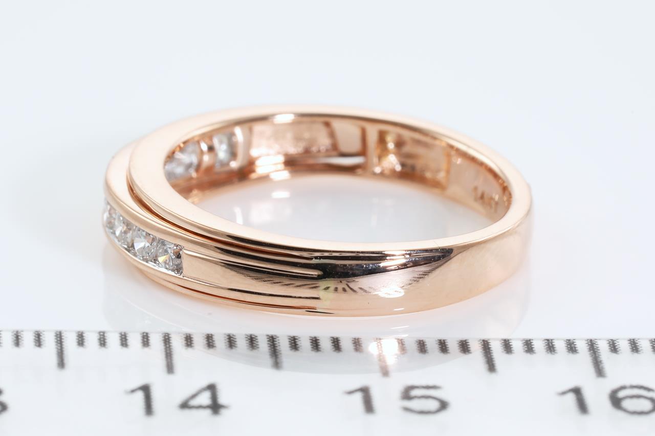 Diamond eternity ring with 9 round Diamonds totalling 0.33cts (Estimated Grading: H SI). 14ct rose gold. Ring size M - cannot be resized up, down with ring clip. Weight: 2.8g (New).
