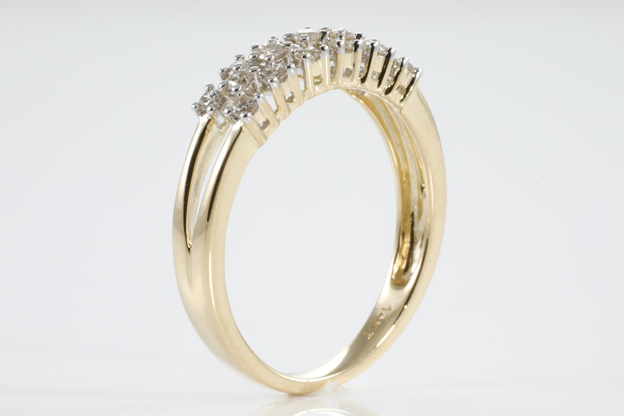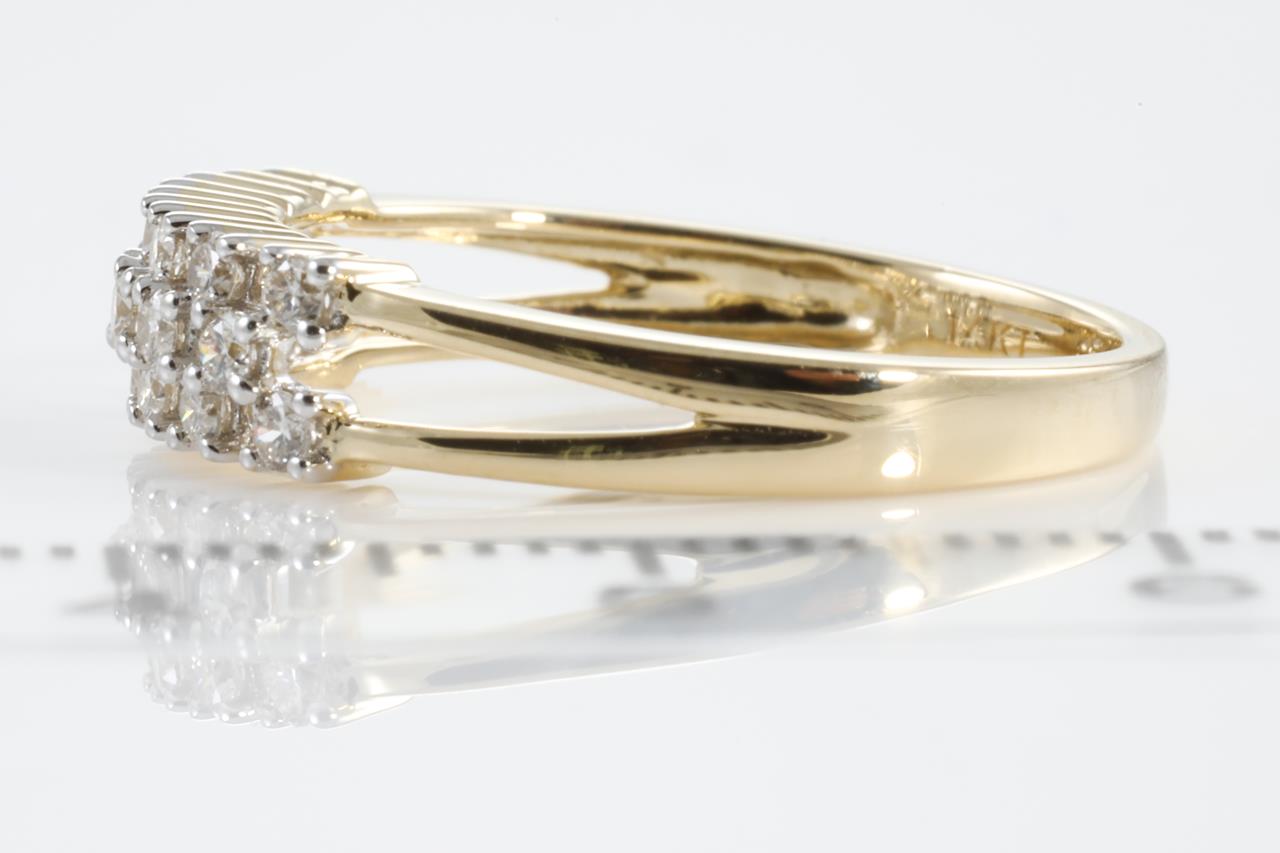 Diamond ring with round Diamonds totalling 0.33cts (Estimated grading: H SI). 14ct yellow gold. Ring size: L1/2 - Note: ring resizing is not recommended. Weight: 2.3g (New).